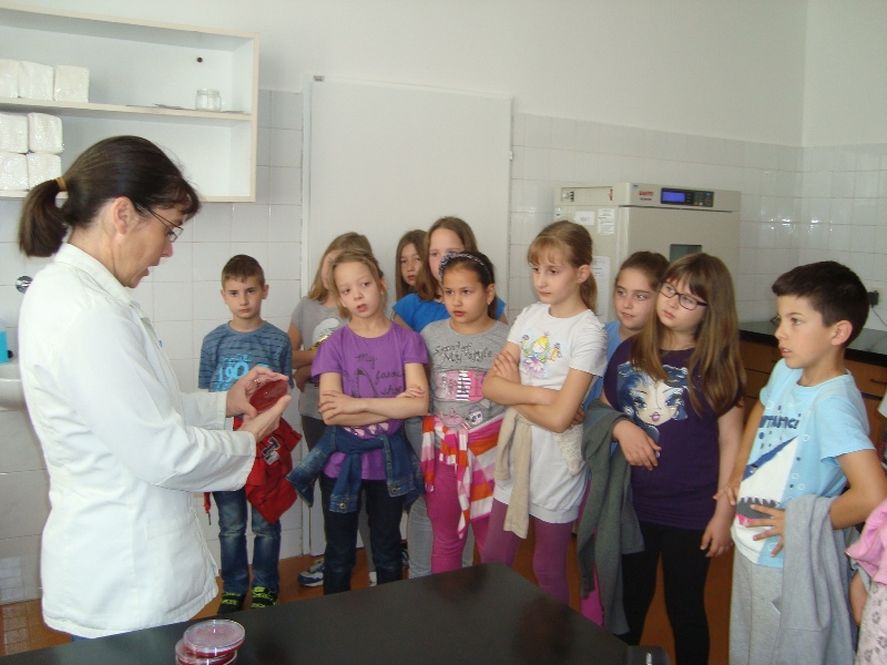 Za kraj – laboratorij. Tu radi Lukina mama. Dora se javila za bris grla. Vidjeli smo i kako se ispituje kvaliteta namirnica. Nekima je bilo žao što su u neke posude stavljali salamu.