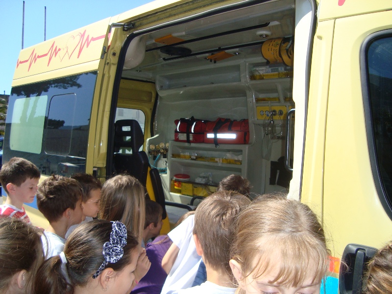 Najprije smo posjetili djelatnike Hitne pomoći i upoznali se sa radom te službe. Nezaobilazan je bio pregled vozila koje koristi ta služba.