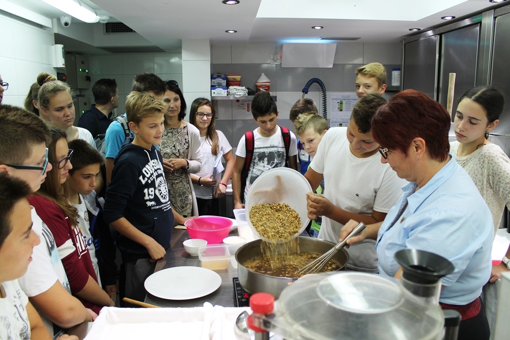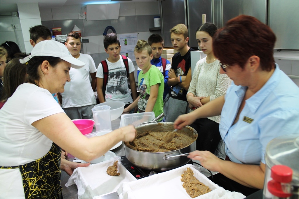 Učenici su pomogli u pripremi masta (svježe ocijeđeni sok od grožđa). Zatim su pozorno slušali, gledali i pomagali u daljnjoj pripremi. Strpljivo su čekali dok se 5 litara masta kuhalo na vatri kako bi se ukuhalo na 3 litre.