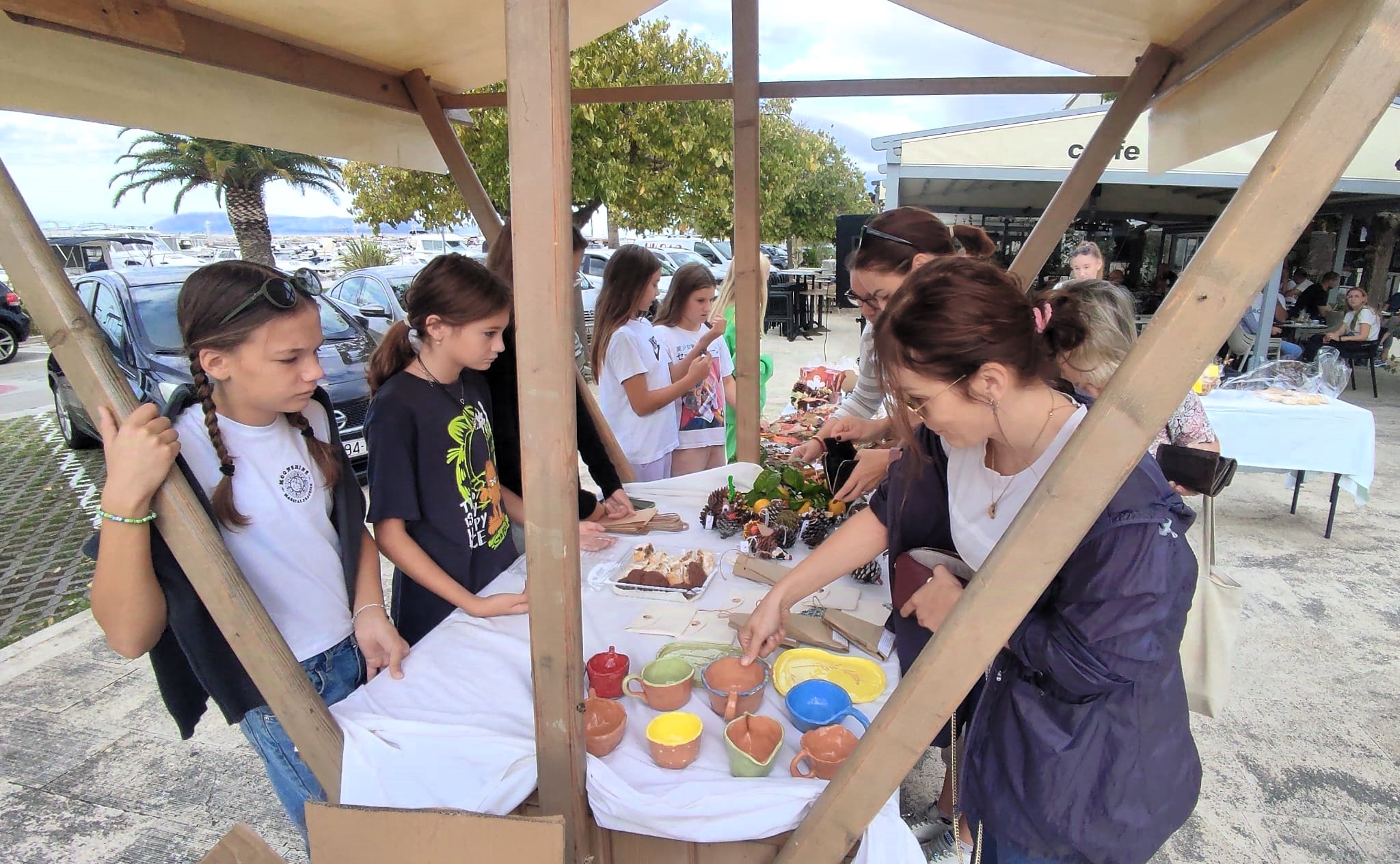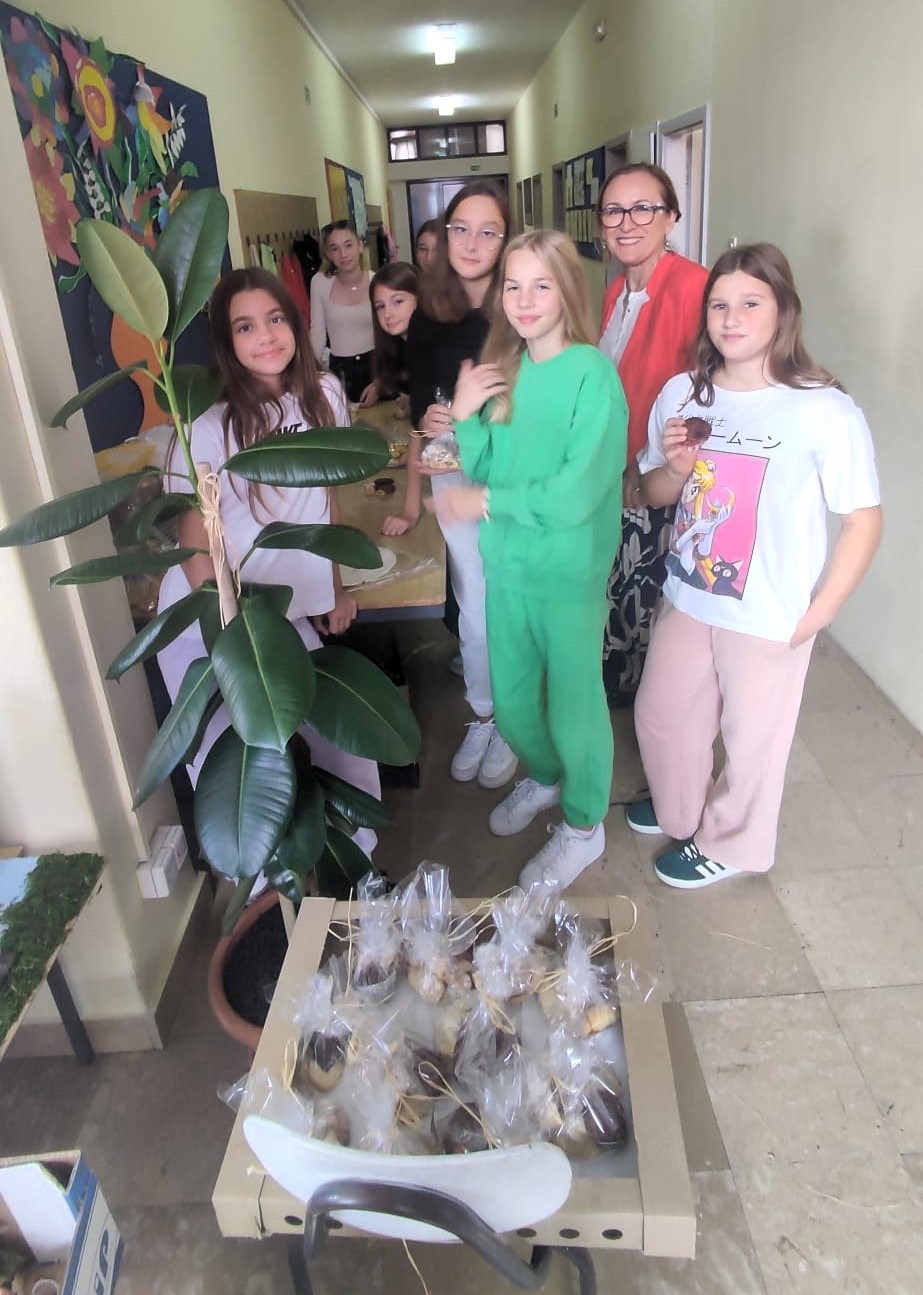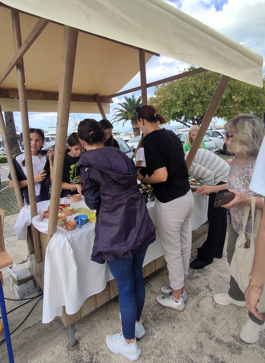 Posjetitelji su mogli kupiti domaće kolače, pletene novčanike i keramičko posuđe, radove učenika viših i nižih razreda.