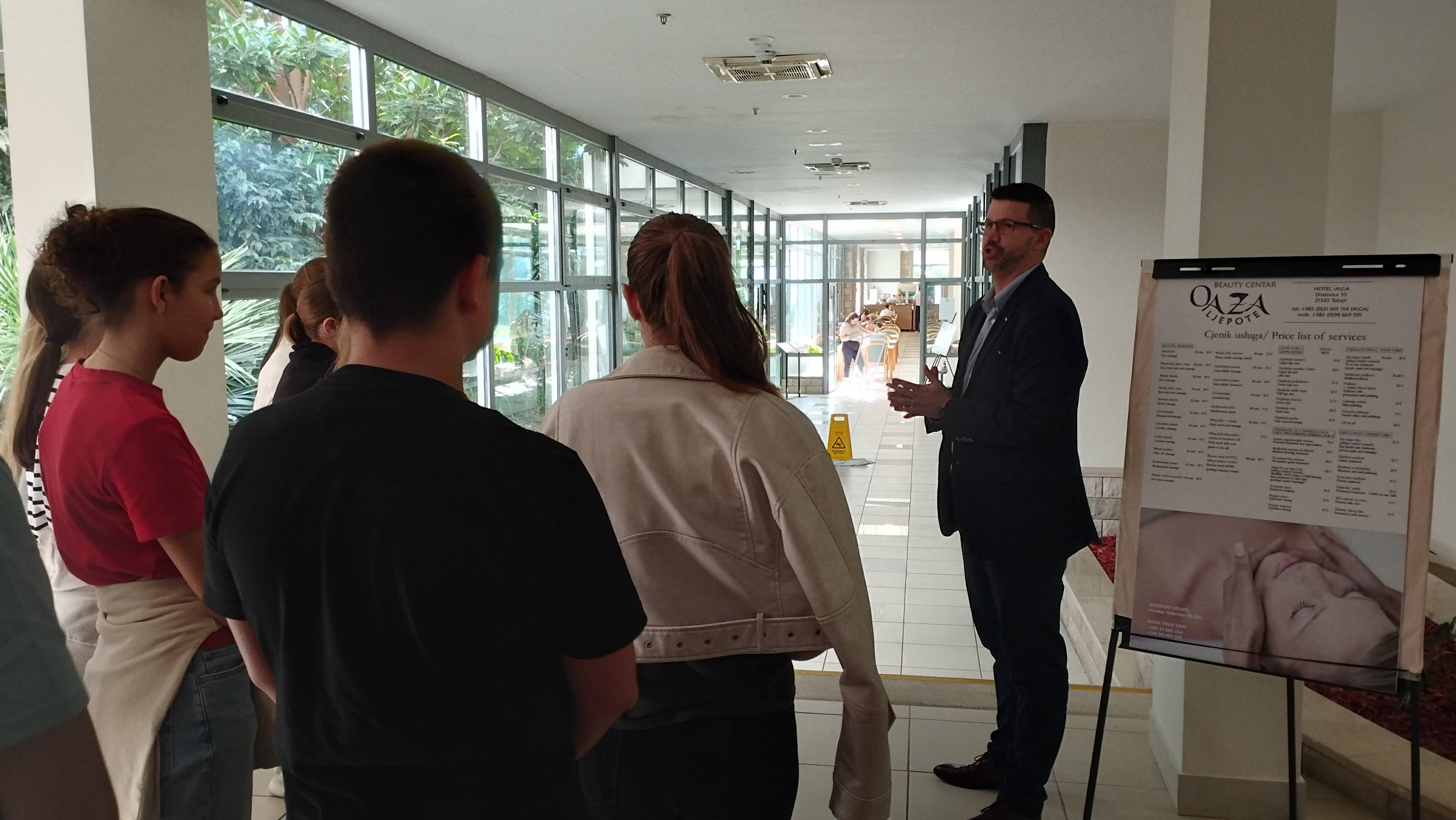 Učenike je dočekala uprava hotela, koja im je pružila važne informacije o poslovanju hotela i potaknula ih na usvajanje bitnih znanja i vještina potrebnih u svijetu rada, posebno naglašavajući važnost poznavanja stranih jezika i informacijsko-komunikacijskih tehnologija.