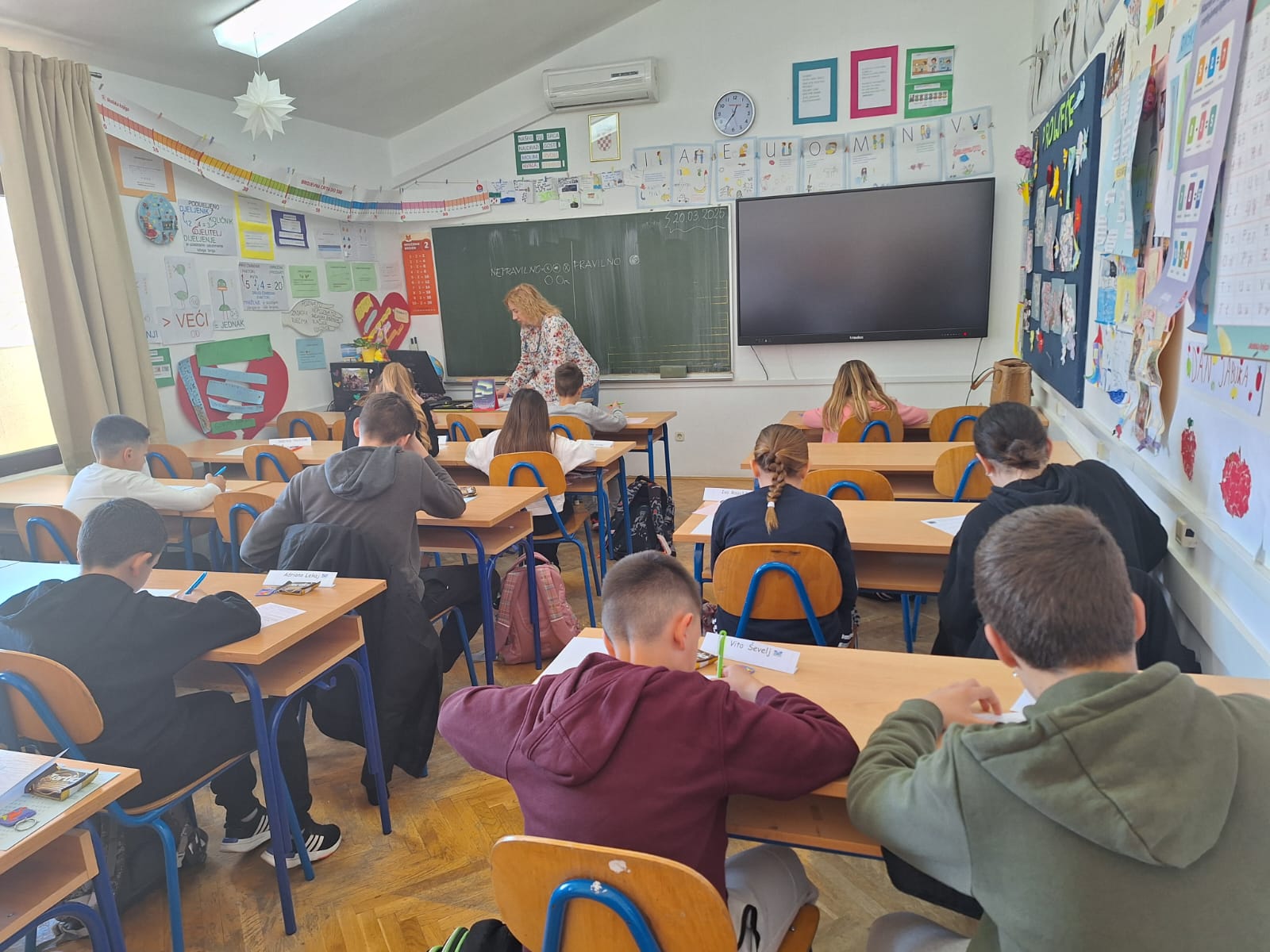 U četvrtak, 20. 3. 2025. g., zahvaljujući organizaciji predmetne učiteljice matematike Sanje Nizić, održalo se međunarodno matematičko natjecanje Klokan bez granica, već 22. godinu zaredom u našoj školi.