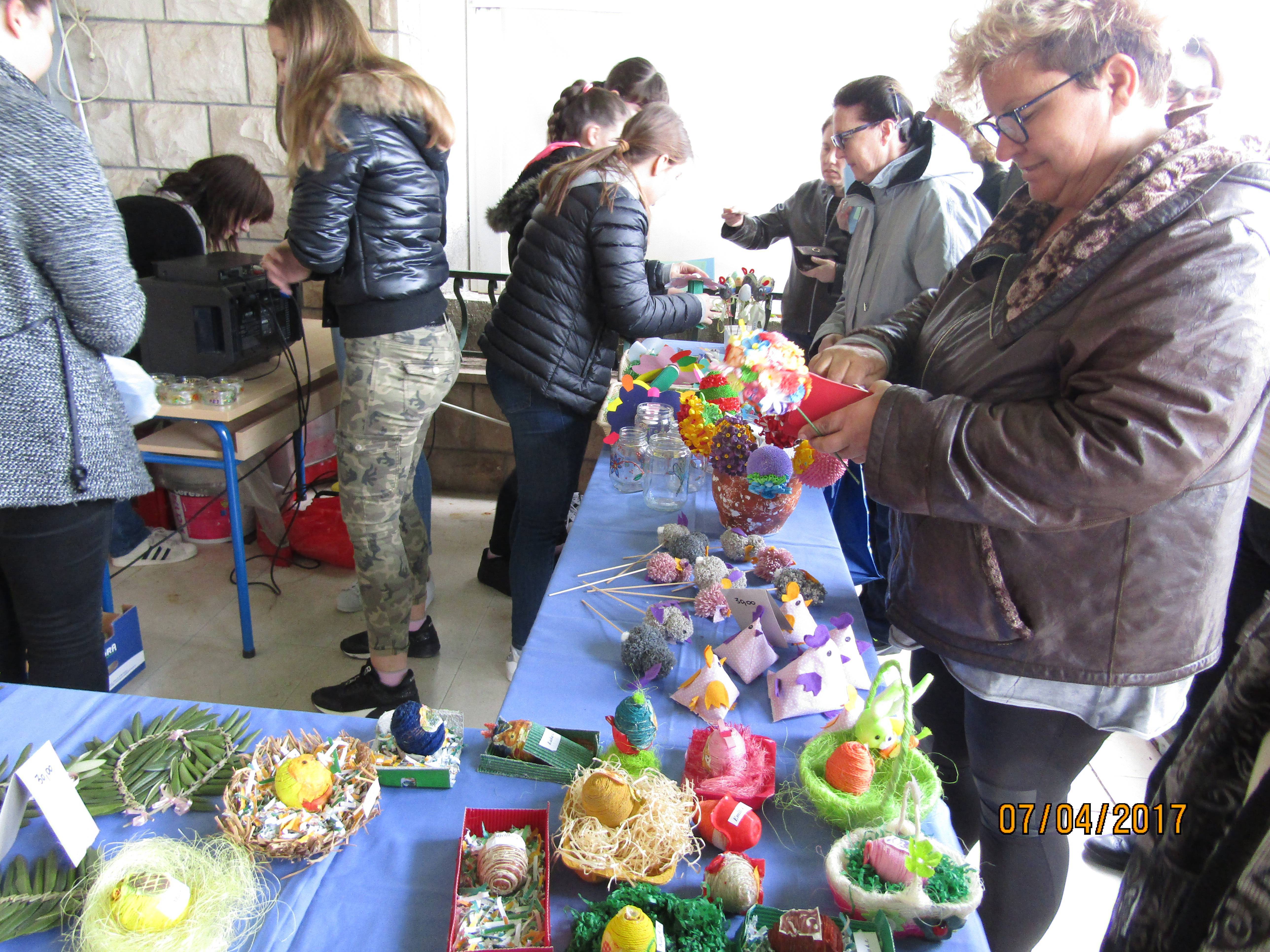 Ni prohladno vrijeme praćeno laganom burom nije omelo učenike i učitelje u petak, 7.4.2017., u organizaciji sajma na otvorenom. Na svojim radionicama djeca su, zajedno s učiteljima, izradila ukrase vezane uz predstojeći veliki kršćanski blagdan Uskrs.
