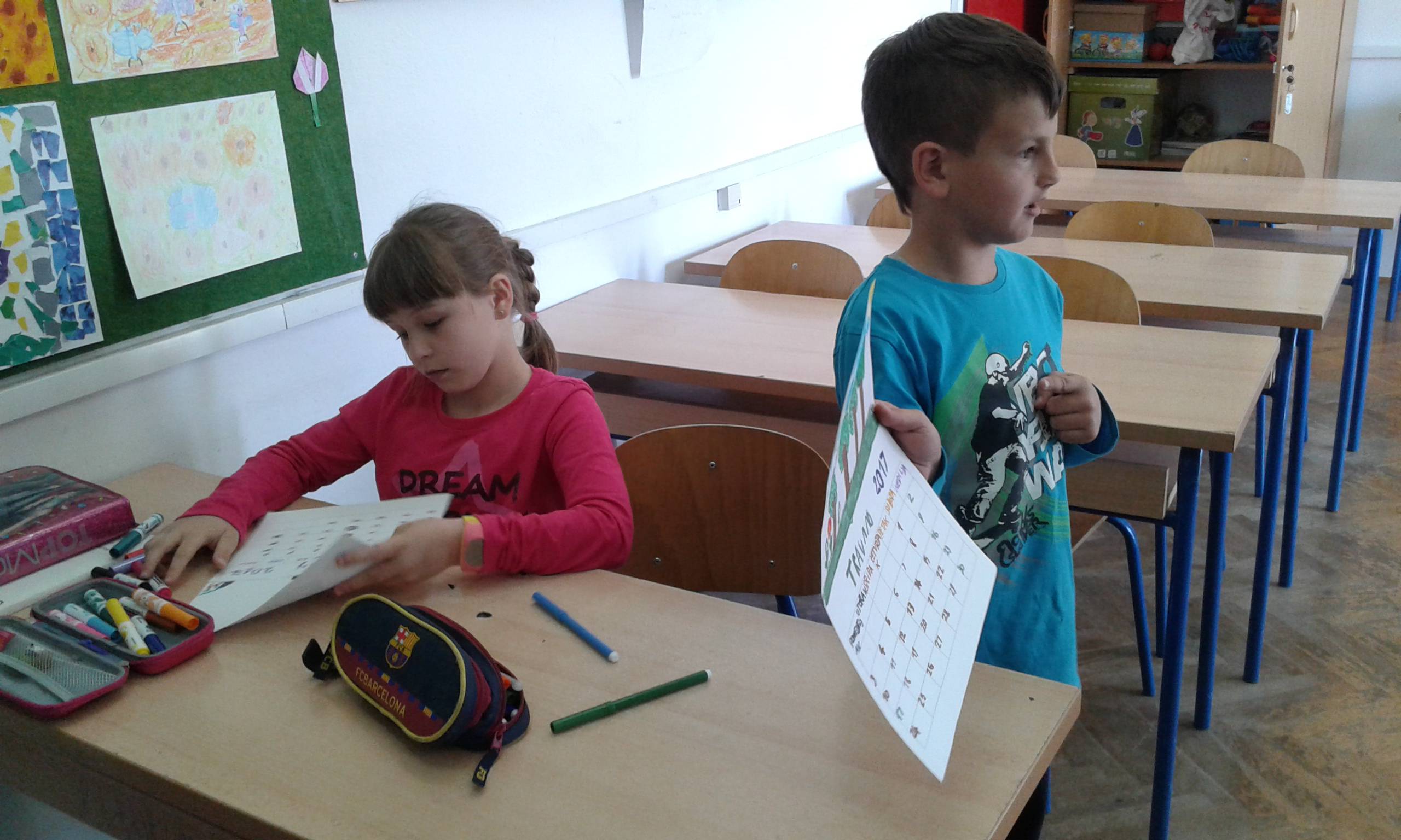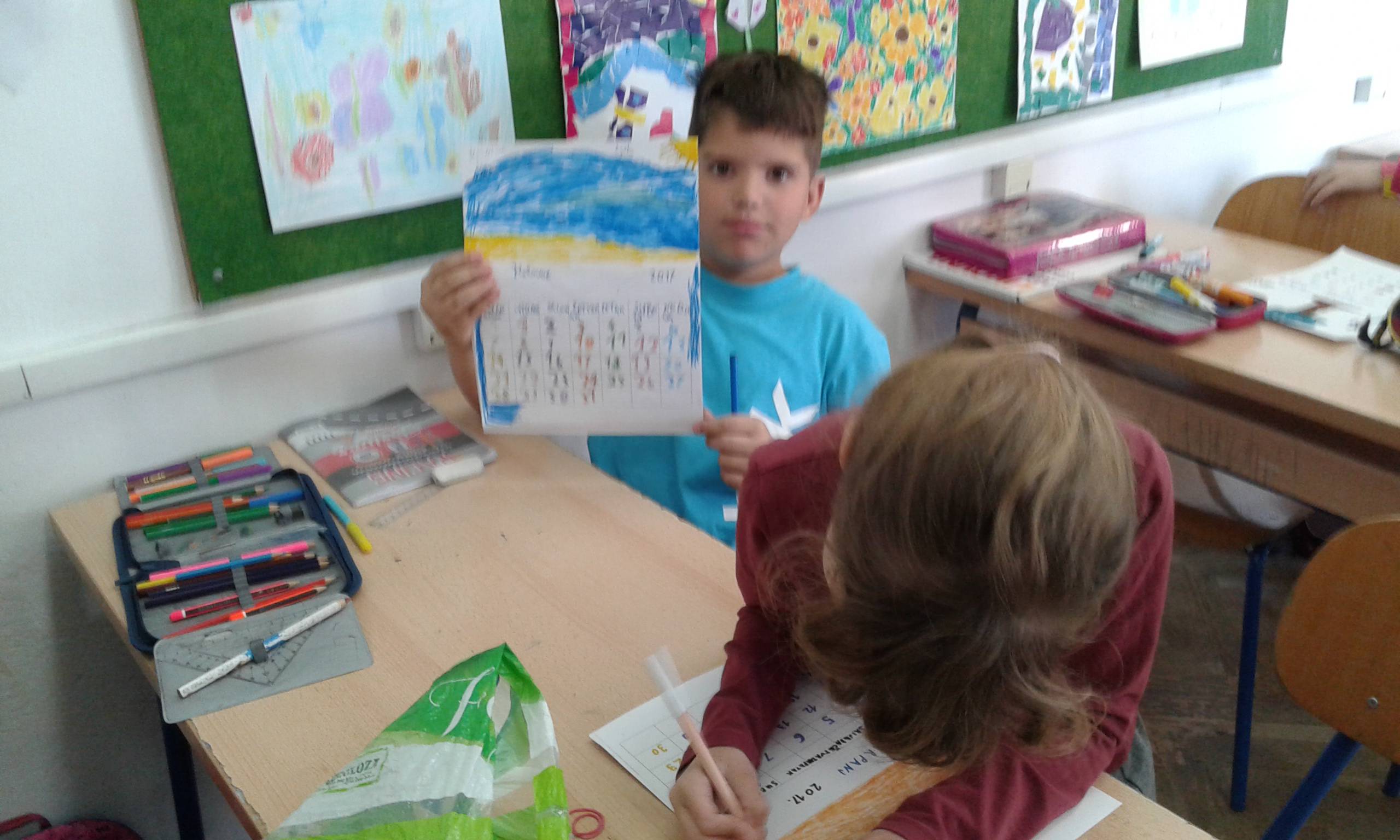 Povodom toga napravili su razredni kalendar. Izvlačili su brojeve mjeseci uz pomoć slučajnog odabira iz našeg E-dnevnika. Svatko je dobio zadatak oslikati jedan mjesec u godini i napisati dane i tjedne za taj mjesec. Pošto nas u razredu ima samo 11, a 12 je mjeseci u godini, zadnji mjesec prosinac napravili smo zajedno.