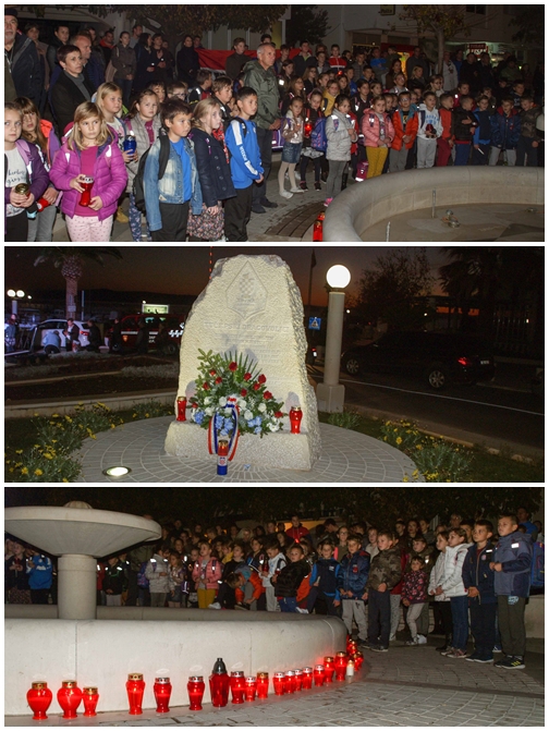 U Tučepima na lučici, uz fontanu i svjetla lampiona našli su se svi koji su mogli doći: učenici, učitelji, fra Nediljko, branitelji, mladi i stari. Svi oni došli su odati počast žrtvi bez usporedbe, zahvaliti braniteljima i svima onima koji su nas zadužili za ono što danas imamo. Svečano i dostojanstveno, onako kako i dolikuje toj prigodi, izmjenjivala se glazba i riječ. Voditeljsku riječ uputila je naša vjeroučiteljica Marina; učenici 5.,6. i 7. razreda recitirali su pjesme Domovini; pod vodstvom učitelja Marina školski zbor je otpjevao pjesmu Mojoj lijepoj; klapa Marina je otpjevala himnu i Croatio, iz duše te jubin, a Romana Lalić Pejković pjesme Ljubim te do bola i Dajem ti srce; učiteljica Sanja je pročitala pjesmu Pismo poginulog ratnika, a knjižničarka Brigita pjesmu Majka gardiste. Na samom kraju svima se je obratio branitelj domovinskog rata Ivo Pašalić, a fra Nediljko izmolio molitvu za poginule hrvatske branitelje i sve one koji su svoj život položili na oltar domovine.