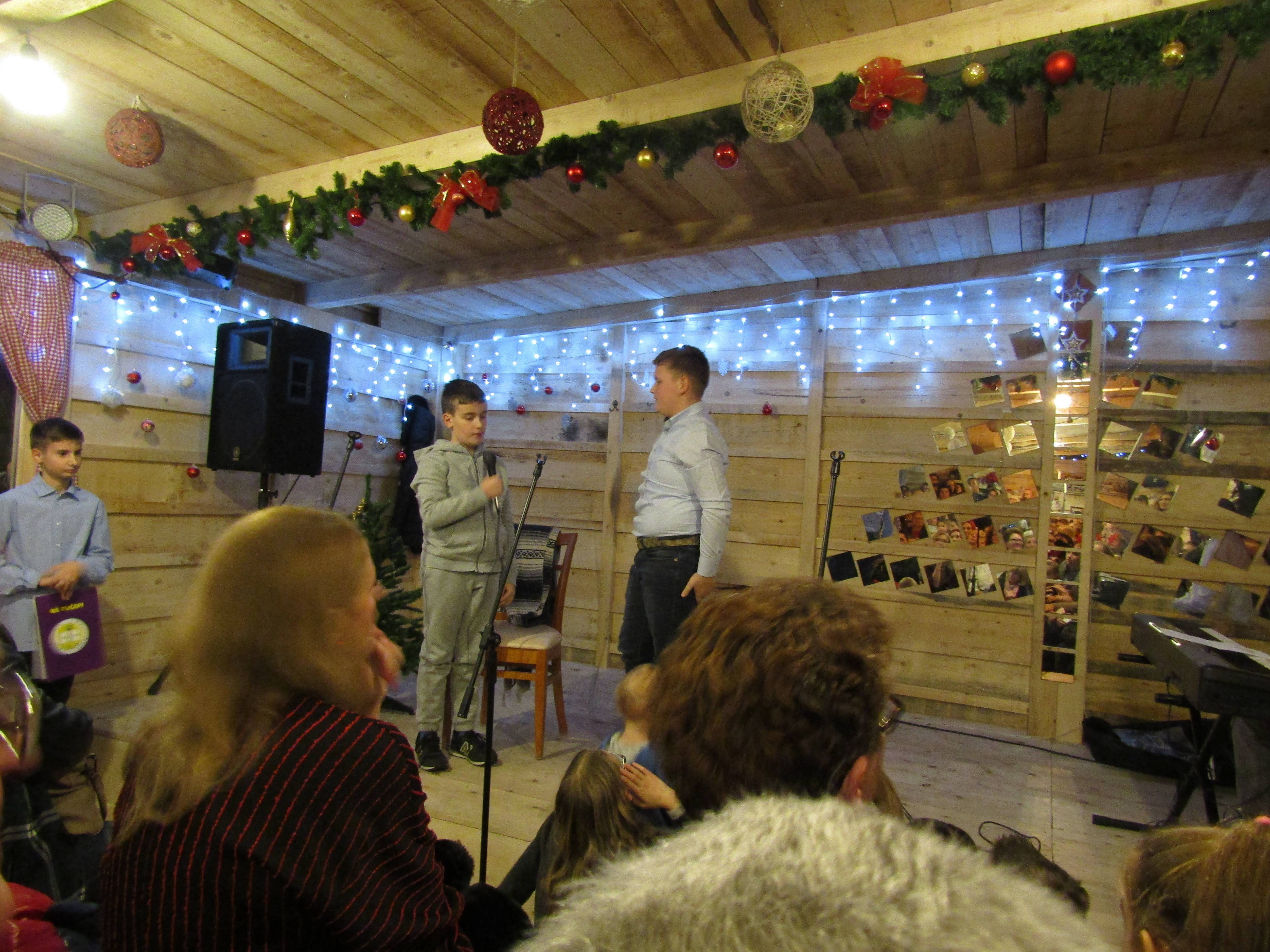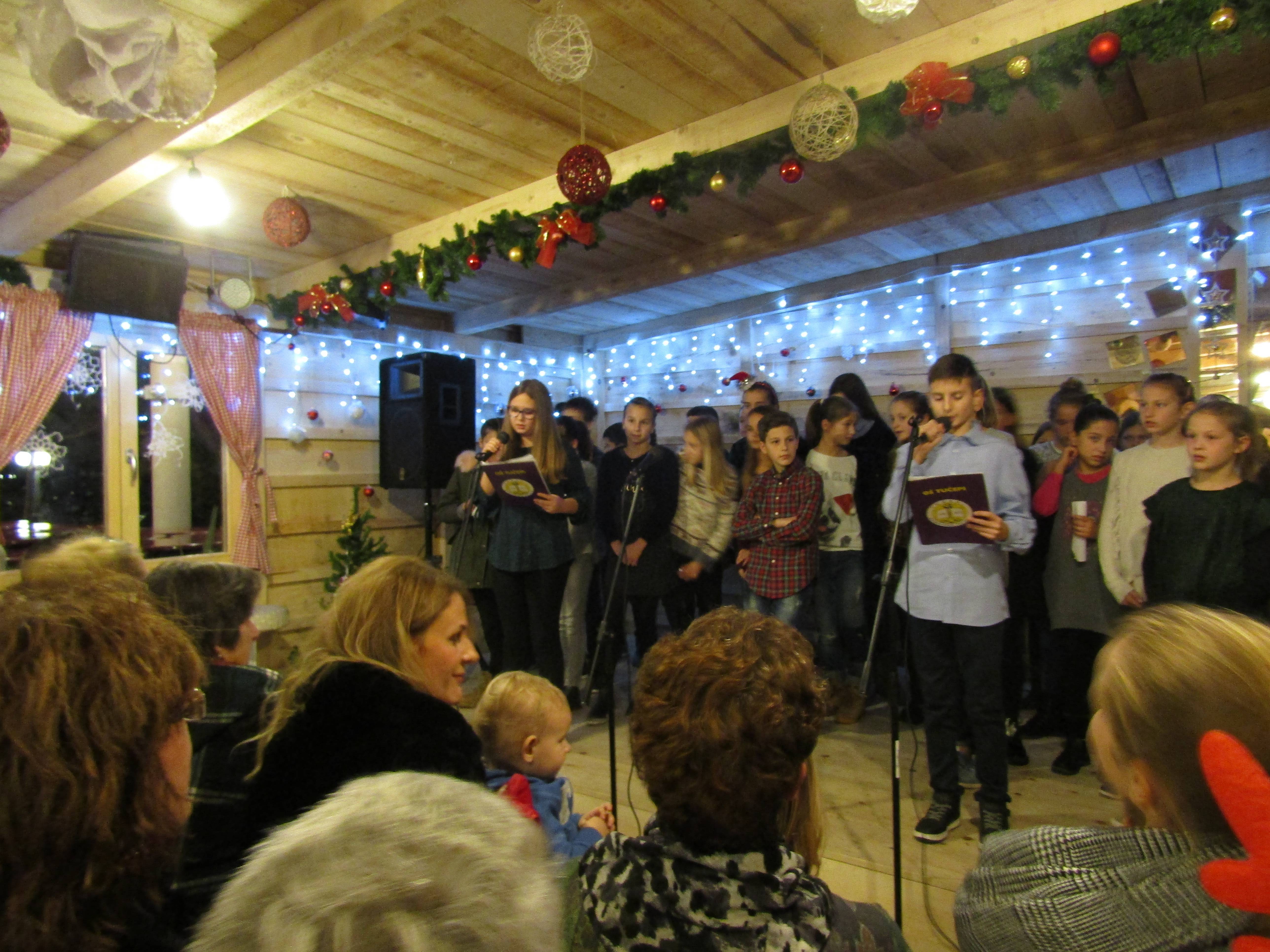 Ovogodišnja božićna priredba učenika naše škole održana je u toploj atmosferi Božićne kućice u kojoj razna događanja priređuje novoosnovana Udruga „Kredenca“.