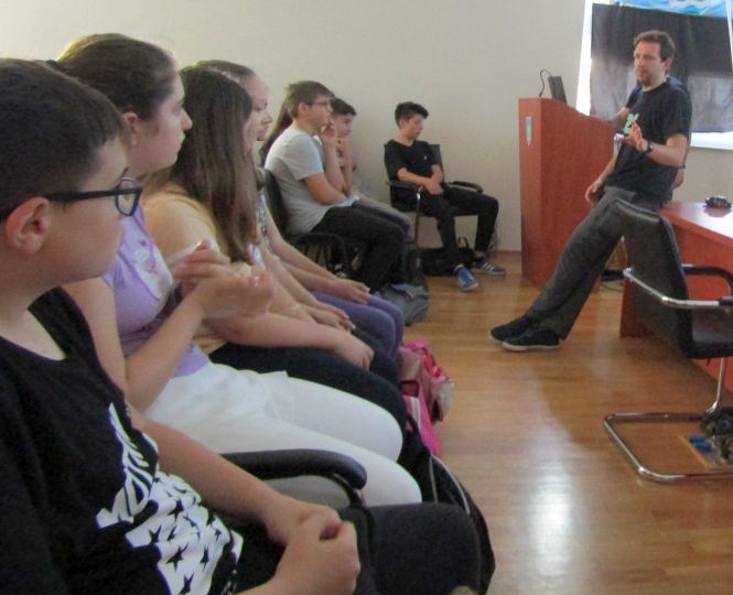 Cijeli program je trajao 3 sata. Nakon kratkog uvoda voditelja i našeg gosta Nina Kovačića, učenici su pažljivo odgledali izvrsno odabrani suvremeni francuski animirani film Phantom boy iz 2013. godine (85 min.) koji potpisuju redatelji Jean-Loup Felicioli i Alain Gagnol. Nakon što su odgledali film, učenici su imali priliku upoznati i razgovarati s poznatim splitskim animatorom Veljkom Popovićem.
