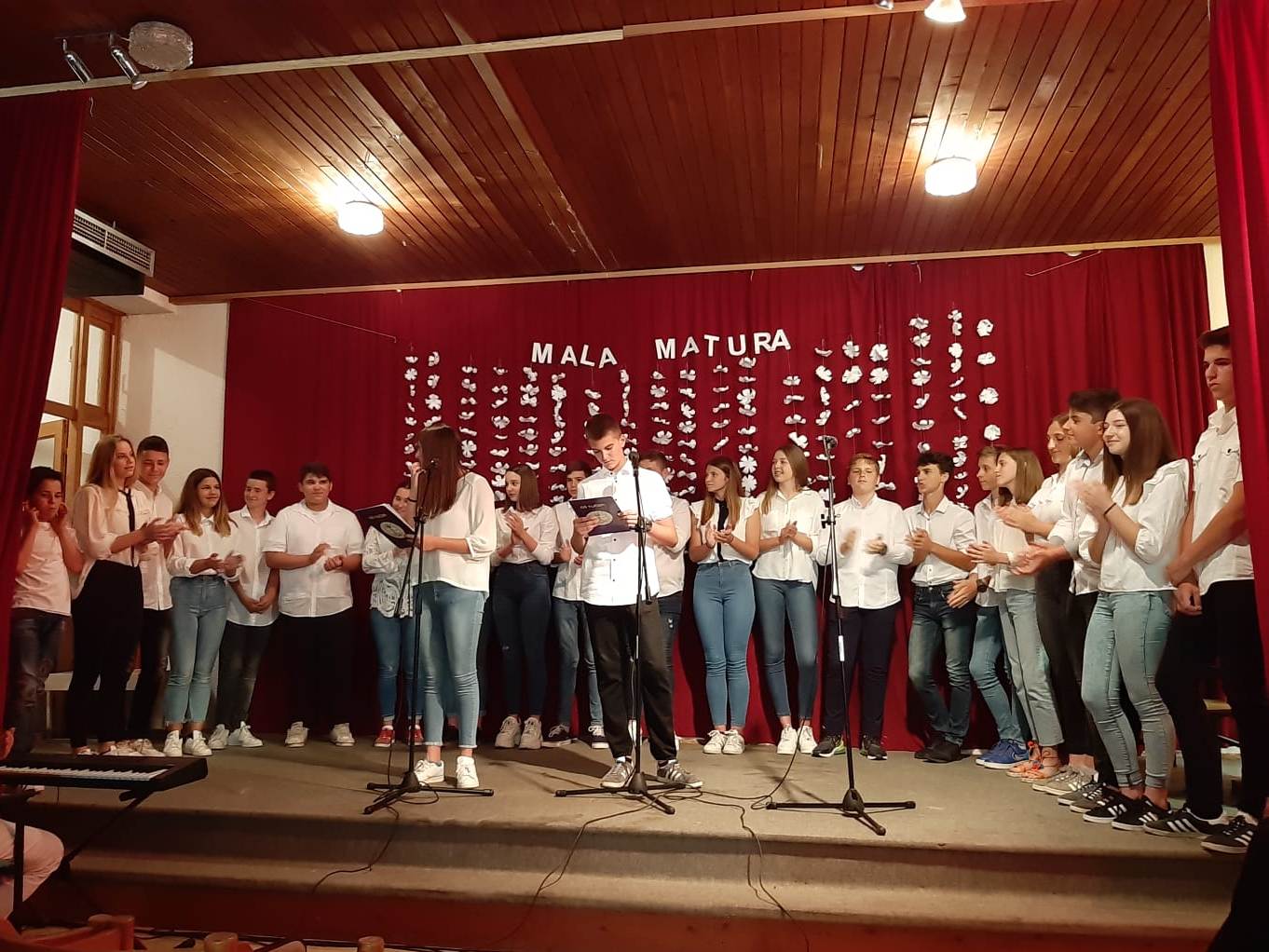 Generacija učenika 2018./19. na svečanoj priredbi oprostila se od osnovne škole. U prepunoj crkvenoj dvorani nazočnim učiteljima i roditeljima zahvalili su se pjesmom, recitacijama, igrokazom s nekih satova te zajedničkom pjesmom.