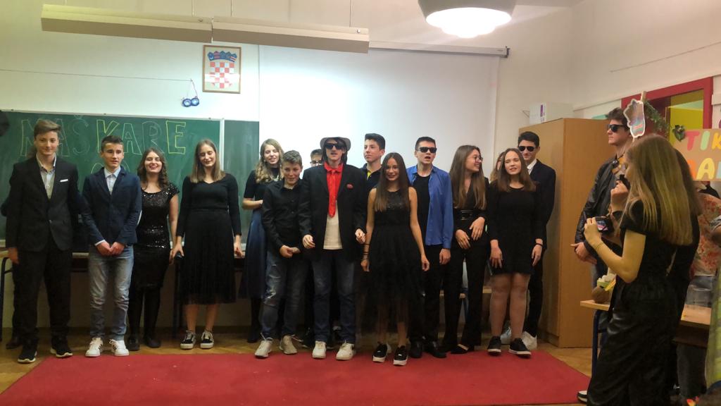 Na kraju su članovi žirija (ravnatelj, učiteljica matematike i učenici - članovi Vijeća učenika) procjenili da su ove godine najbolji nastup imali učenici 8.r. na kojem su sami sebe (svoje vještine, sposobnosti i interese) predstavili na Crvenom tepihu, a među njima sa izvrsnom plesnom točkom na glazbu Michaela Jacksona odabran je za najbolju individualnu masku učenik Josip Zelić.