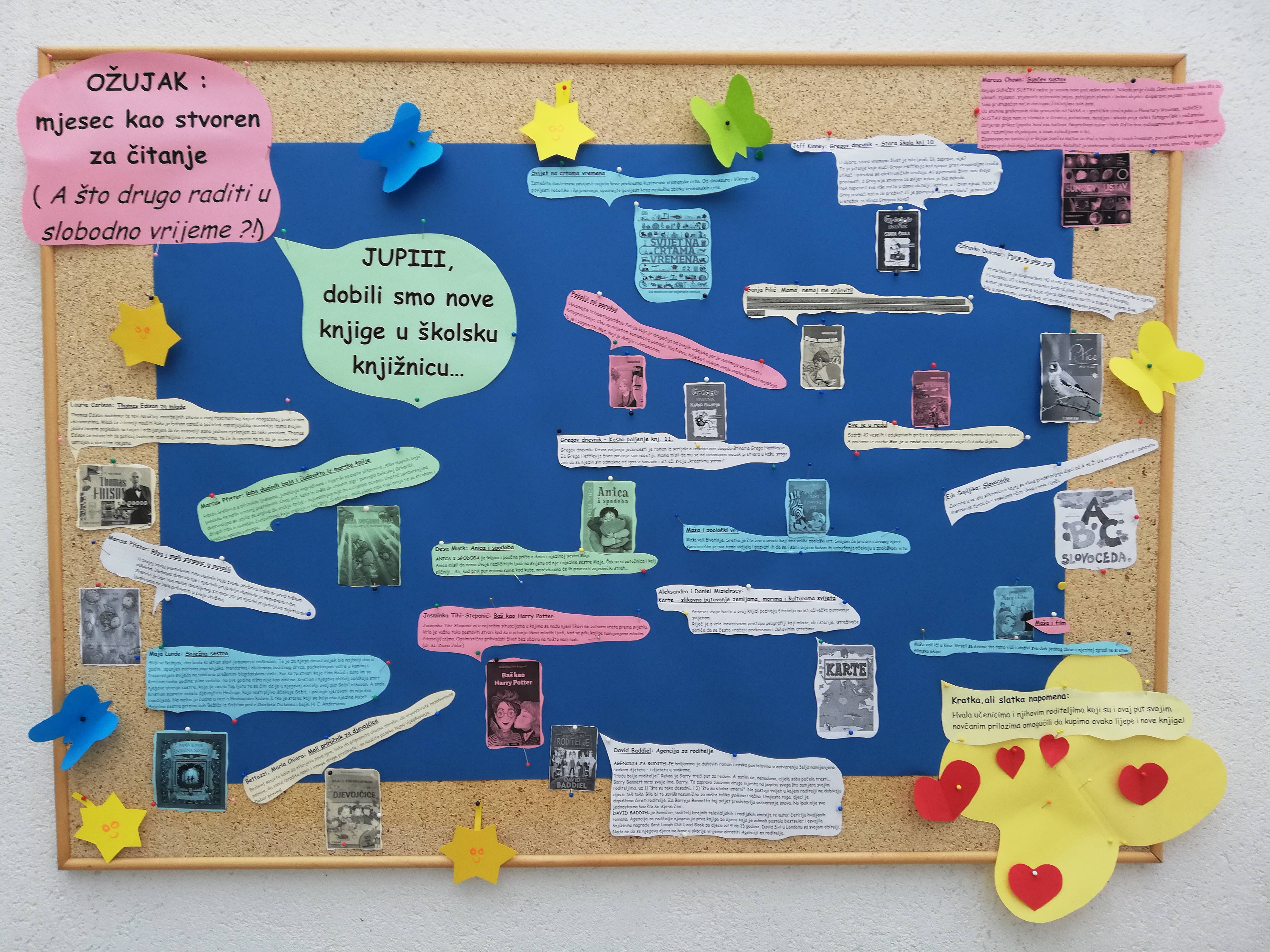 Zbog svima nam znanih razloga, naša školska knjižnica nastavlja sa radom u malčice otežanim uvjetima. I dalje sam uz vas kao podrška za vrijeme trajanja nastave na daljinu. Početkom ožujka sam bila napravila plakat koji se nalazi ispred knjižnice u kojem vas pozivam na čitanje ne znajući da će sve ovako odvijati.