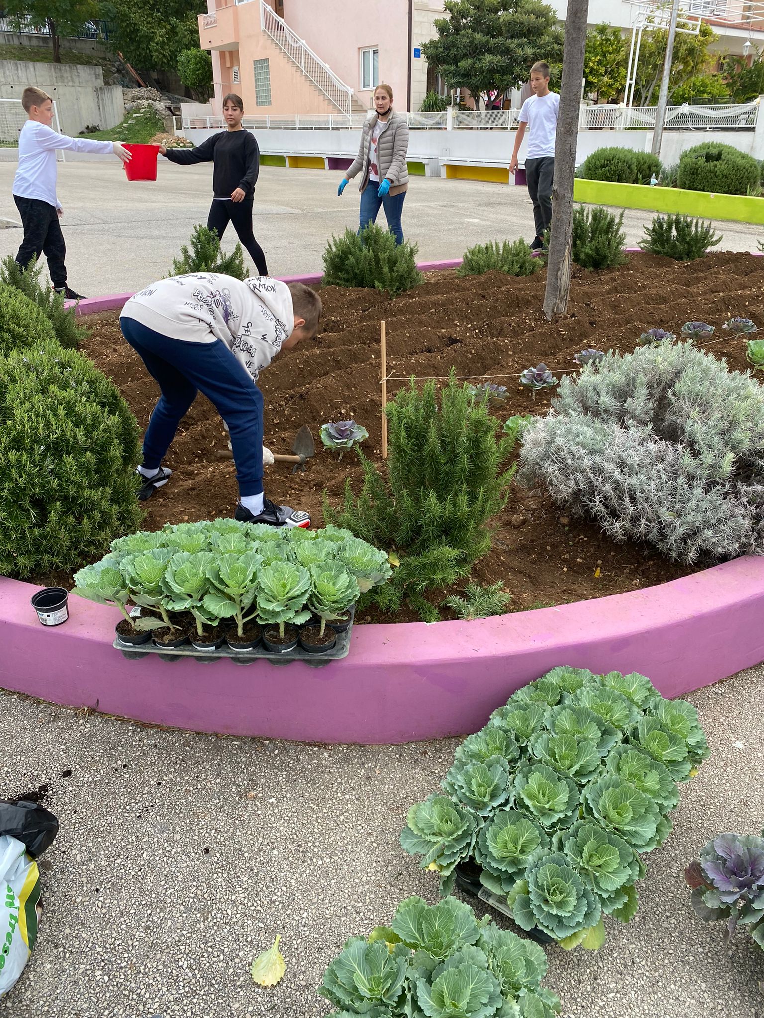 Učenici naše škole su uz pomoć ravnatelja i nastavnica iz matematike, likovne kulture i biologije odlučili iskoristiti lijepo, sunčano vrijeme za urediti školski vrt. Tako su još jednom dokazali kako vode brigu o svom okolišu i kako puno toga mogu napraviti ukoliko zajedno odluče djelovati.