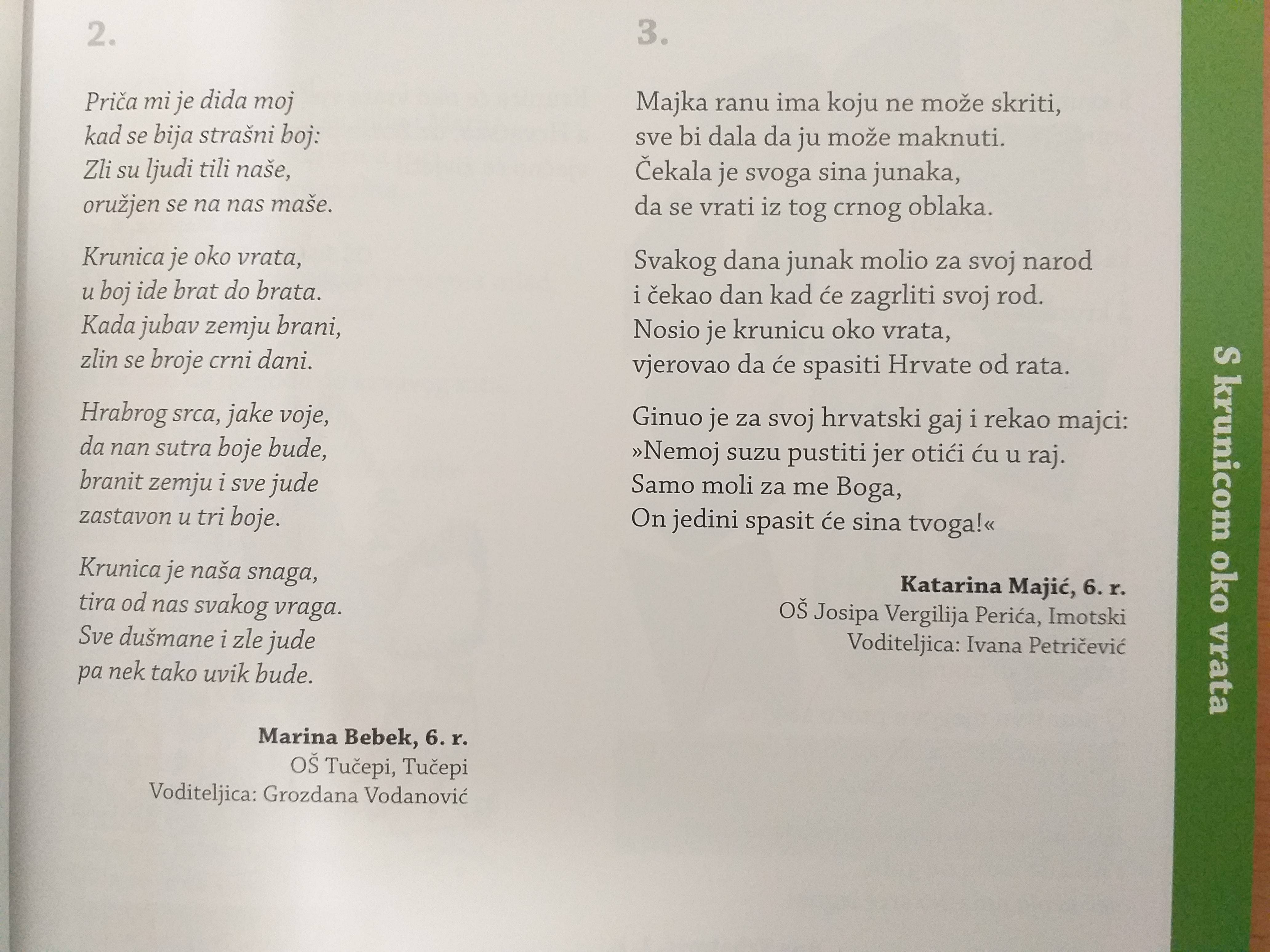 Ponosno ističemo da je jedna od idejnih pokretačica ovog (kao i prethodna četiri) zbornika naša vjeroučiteljica prof. Marina Šimić, koja je na svečanoj promociji, kao predstavnica povjerenstva za literarne radove, predstavila sadržaj zbornika. Osim naše vjeroučiteljice svoj doprinos kao članica povjerenstva za literarne radove i kao lektor ovog zbornika dala je i naša knjižničarka prof. Brigita Mravičić.