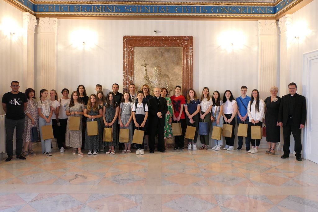 Mons. Puljić je srdačnim i poticajnim riječima i prigodnim poklonima čestitao svim učenicima i vjeroučiteljima - mentorima na postignutom uspjehu.