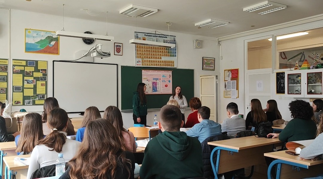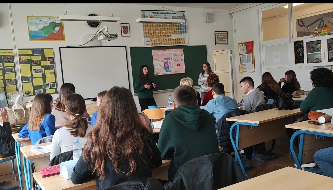 Našu školu su predstavljale učenice Magdalena Čobrnić i Magdalena Jurić s radom Prijenos zaraznih bolesti u školama.