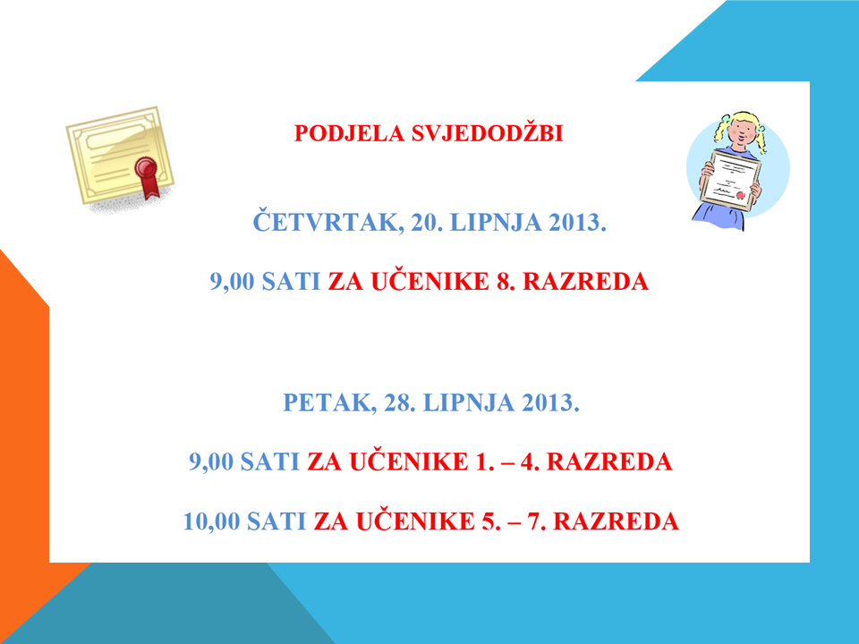 Obavijest učenicima o podjeli učeničkih svjedodžbi
