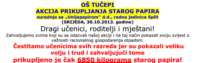 u svibnju 2013. i listopadu 2013. prikupili 12826 kilograma papira