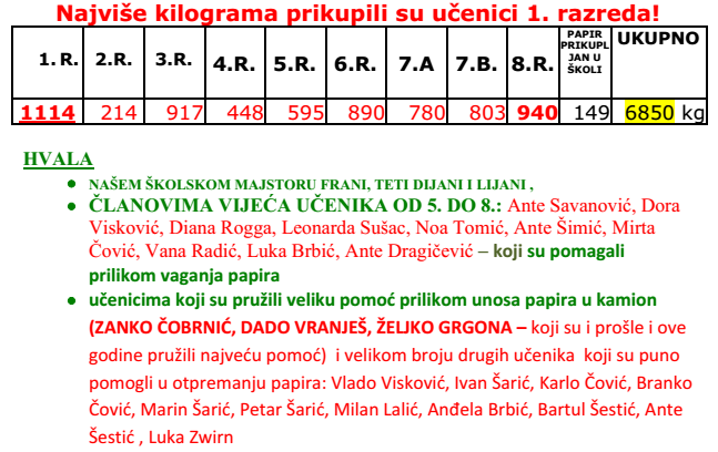 završena je akcija prikupljanja otpadnog papira i kartona Splitsko dalmatinske županije - Upravnog odjela za graditeljstvo, komunalne poslove, infrastrukturu i zaštitu okoliša.