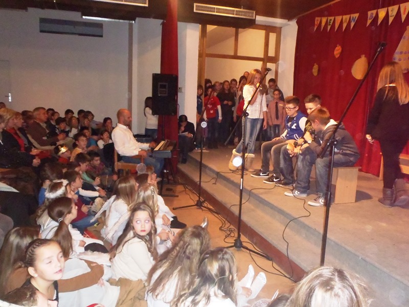 Školski zbor je, vođen učiteljem Marinom Ercegom, sve nazočne koji su napunili dvoranu razveselio s nekoliko božićnih pjesama kao i četvrtaši pjesmom Zvončići.