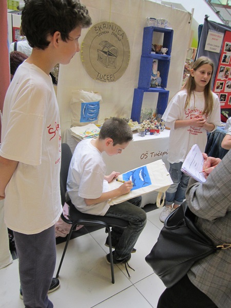 Rad naše Učeničke zadruge Škrinjice su i ove godine 13. travnja, na Županijskoj smotri učeničkih zadruga u Splitu, u City centru, predstavili učenici 6. razreda Stipe Šarić, Borna Šimić i Lora Vitlić te njihove voditeljice Ivana Volarević i Rozana Alfirević. Na našem štandu posjetitelji su mogli vidjeti keramiku, oslikane platnene torbe, figurice ribara i baka od kaširanog papira, oslikane staklene svijećnjake, prirodnu kozmetiku od maslinovog ulja – sapune, meleme, balzame za usne, vrećice lavande „Baba i dide“.