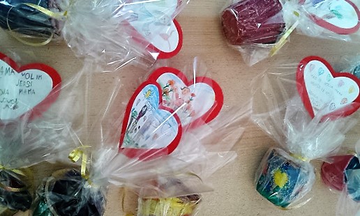Za mame su na satu Likovne kulture i na sekciji Vrijedne ruke napravili ukrasne pitare, a na satu Vjeronauka sa vjeroučiteljicom napravili su srca na štapićima sa porukama svojim mamama.