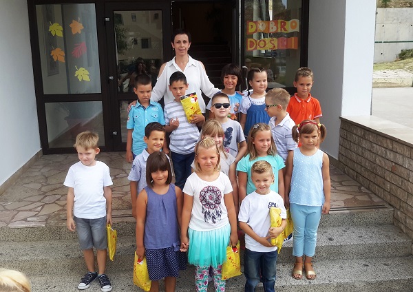 Kao i uvijek sa puno emocija prošao je prvi kratki susret prvaša sa školom. Njihovi prijatelji iz starijih razreda pokušali su tremu prvog dana razbiti sa pjesmom i prigodnim recitacijama. Nakon razgovora sa svojom razrednom učiteljicom Fani Marvičić učenici su se fotografirali za uspomenu i sa slatkim paketićima – donacijom općine Tučepi zajedno s roditeljima pošli svojim kućama.