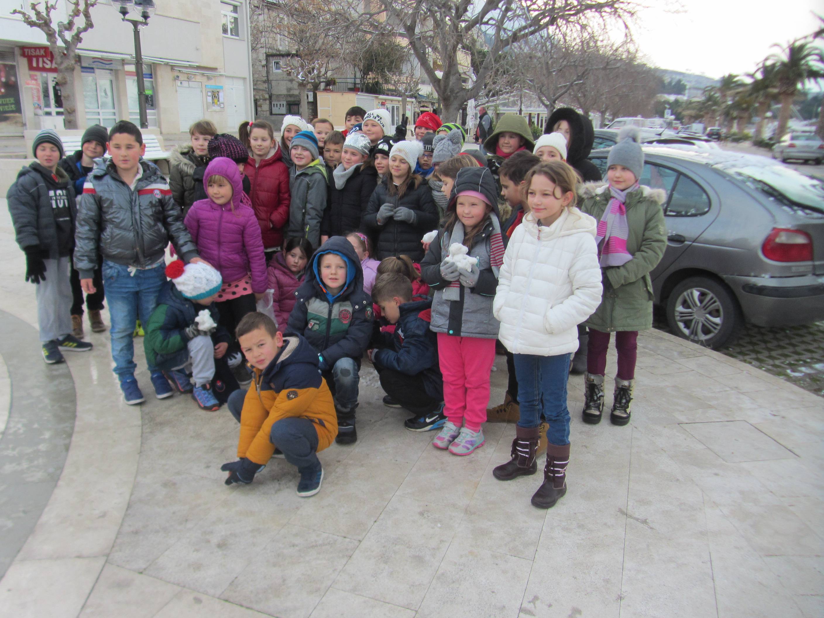 Već prvi školski sat smo izašli na Lučicu da napravimo snješka.