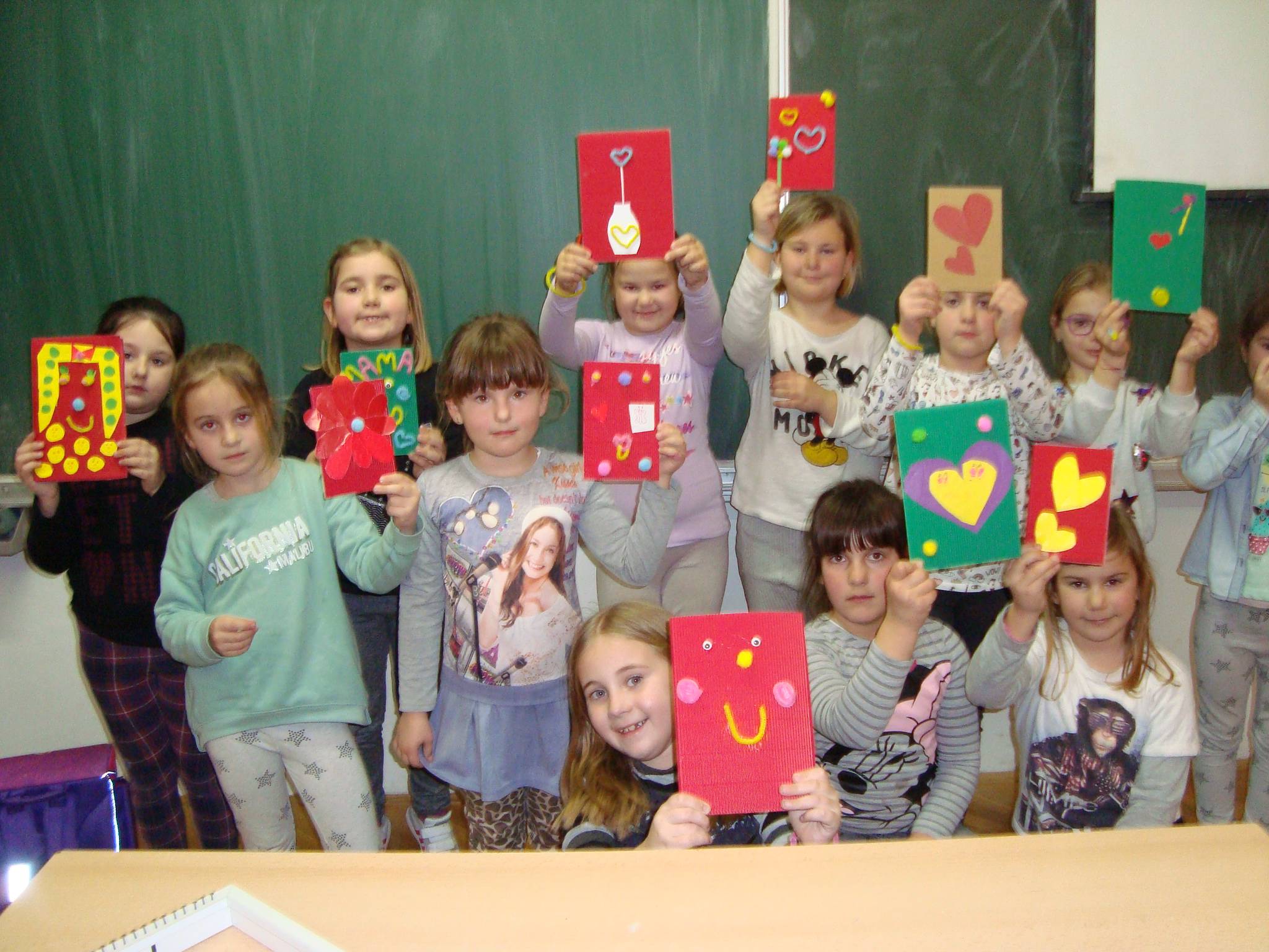 Vrijedne ruke učenica 1. i 2. razreda na današnjim izvannastavnim aktivnostima izradile su prigodne čestitke za svoje mame povodom Dana žena.