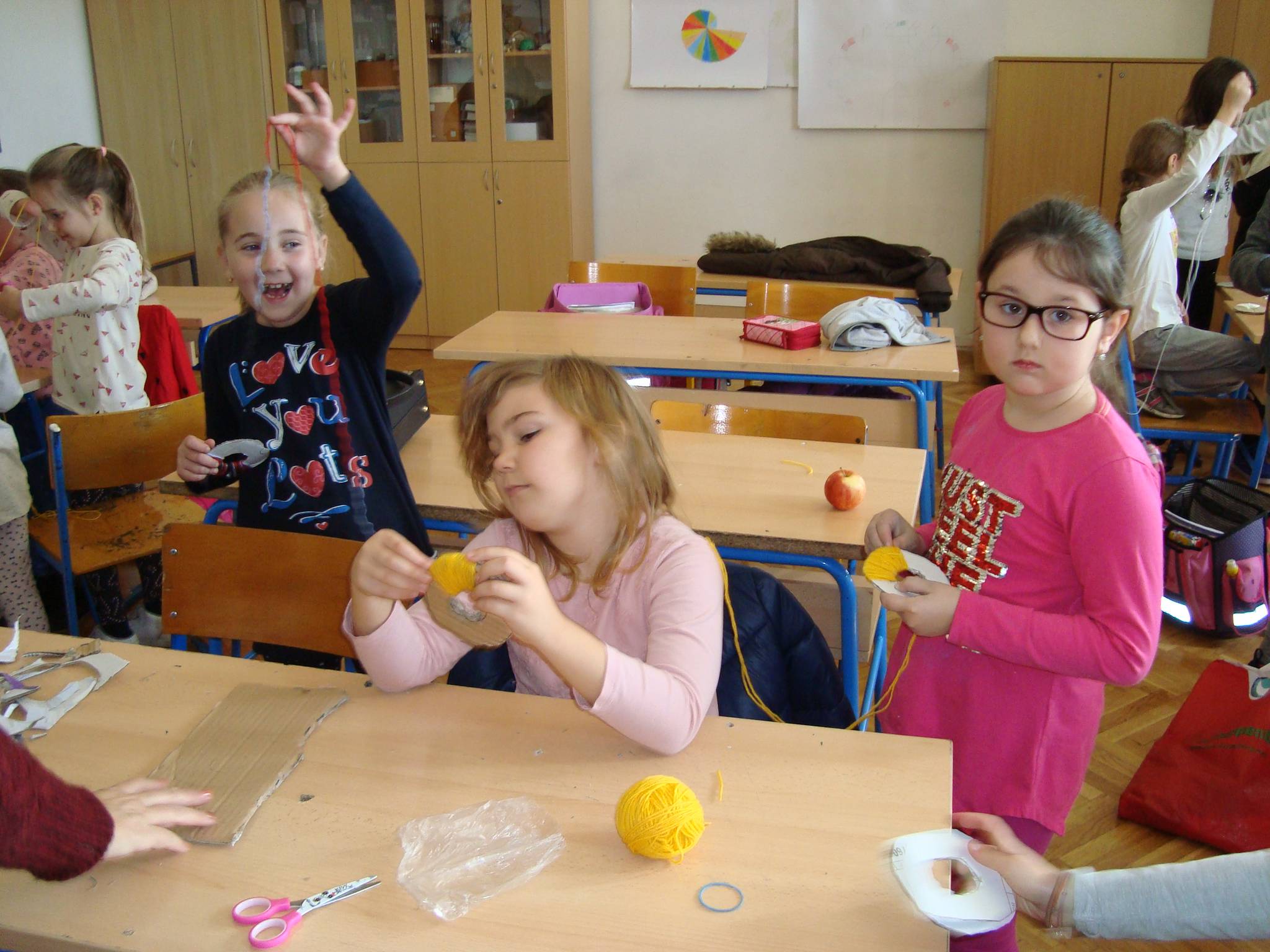 U kreativne radionice tijekom zimskih praznika uključile su se i mame. Mama Danijela Čobrnić naučila nas je kako izraditi piliće od vune.