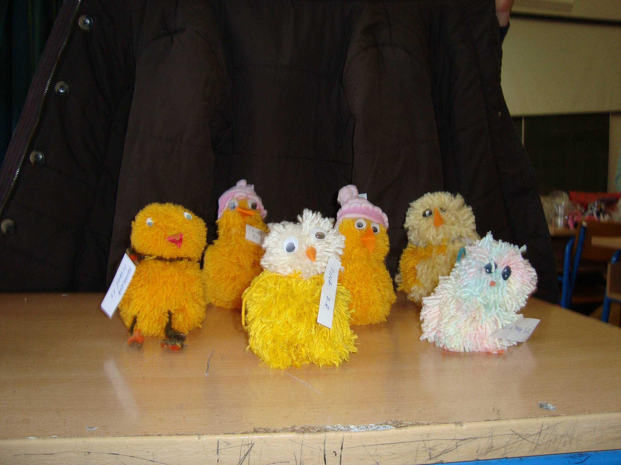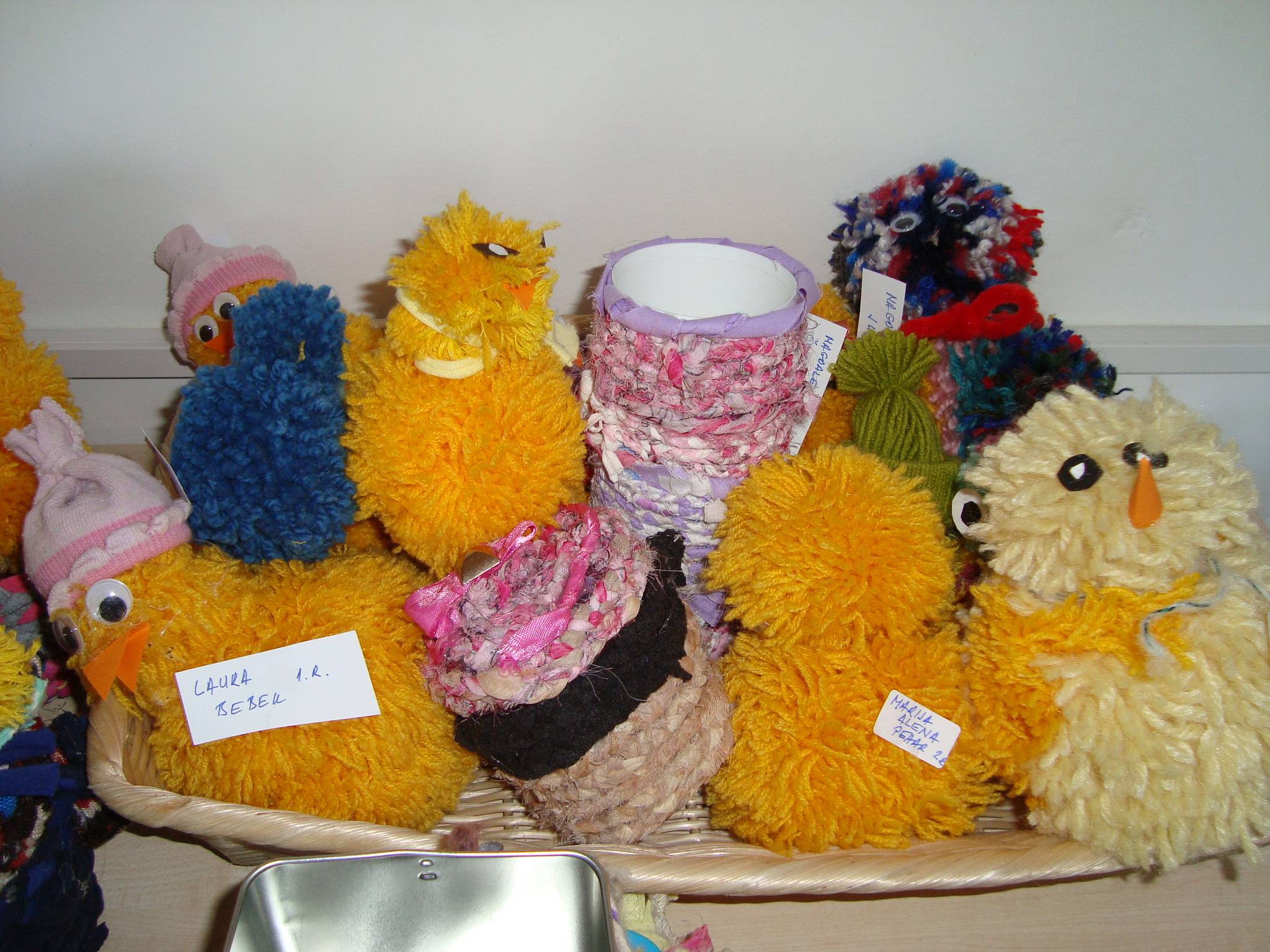 Vrijedne ruke naših učenica za Uskrsni sajam pripremile su piliće od vune i ukrasne posude koje su omotale pletenicama od tkanine.