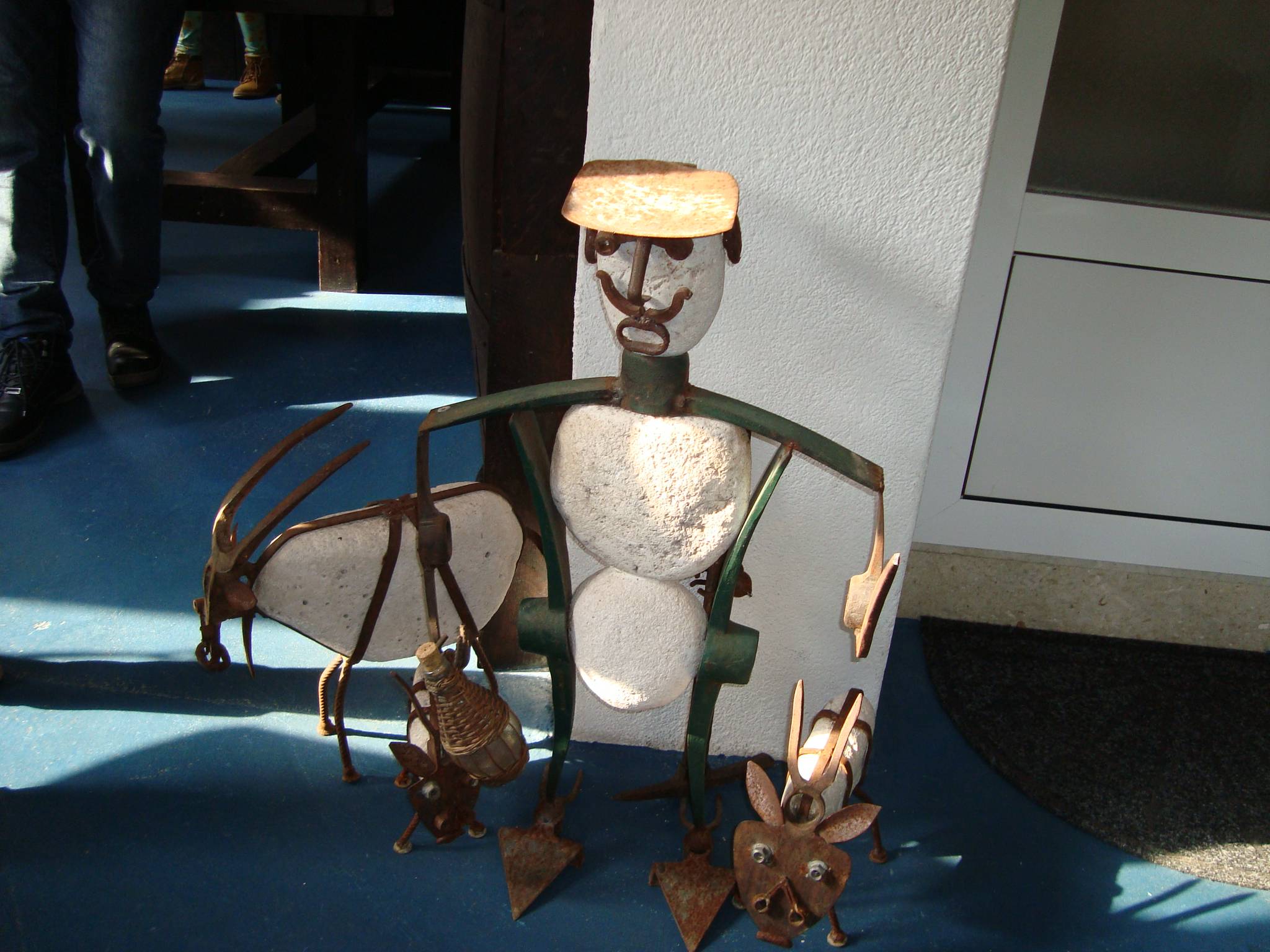 U poznatoj tučepskoj konobi zatekli smo gospodina Gorana Bolanču, koji je izložio 30-ak skulptura napravljenih od starog težačkog alata (motika, maškina, klišta).