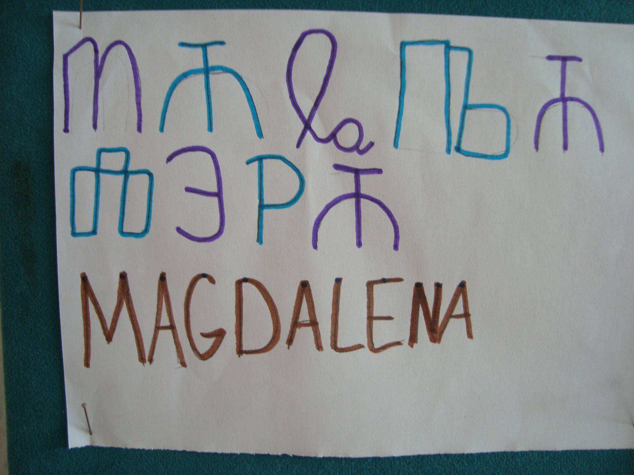 Obrađujući nastavnu jedinicu STOLJEĆE govorili smo o gljagoljici kao povijesnom pismu. Učenici su na satu LK po prikazanom predlošku glagoljičnih slova pisali svoja imena glagoljicom.