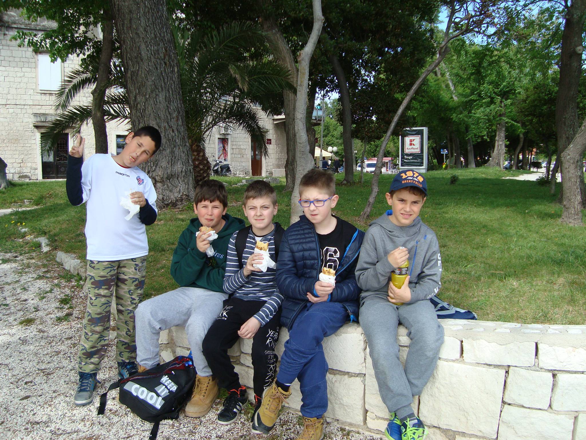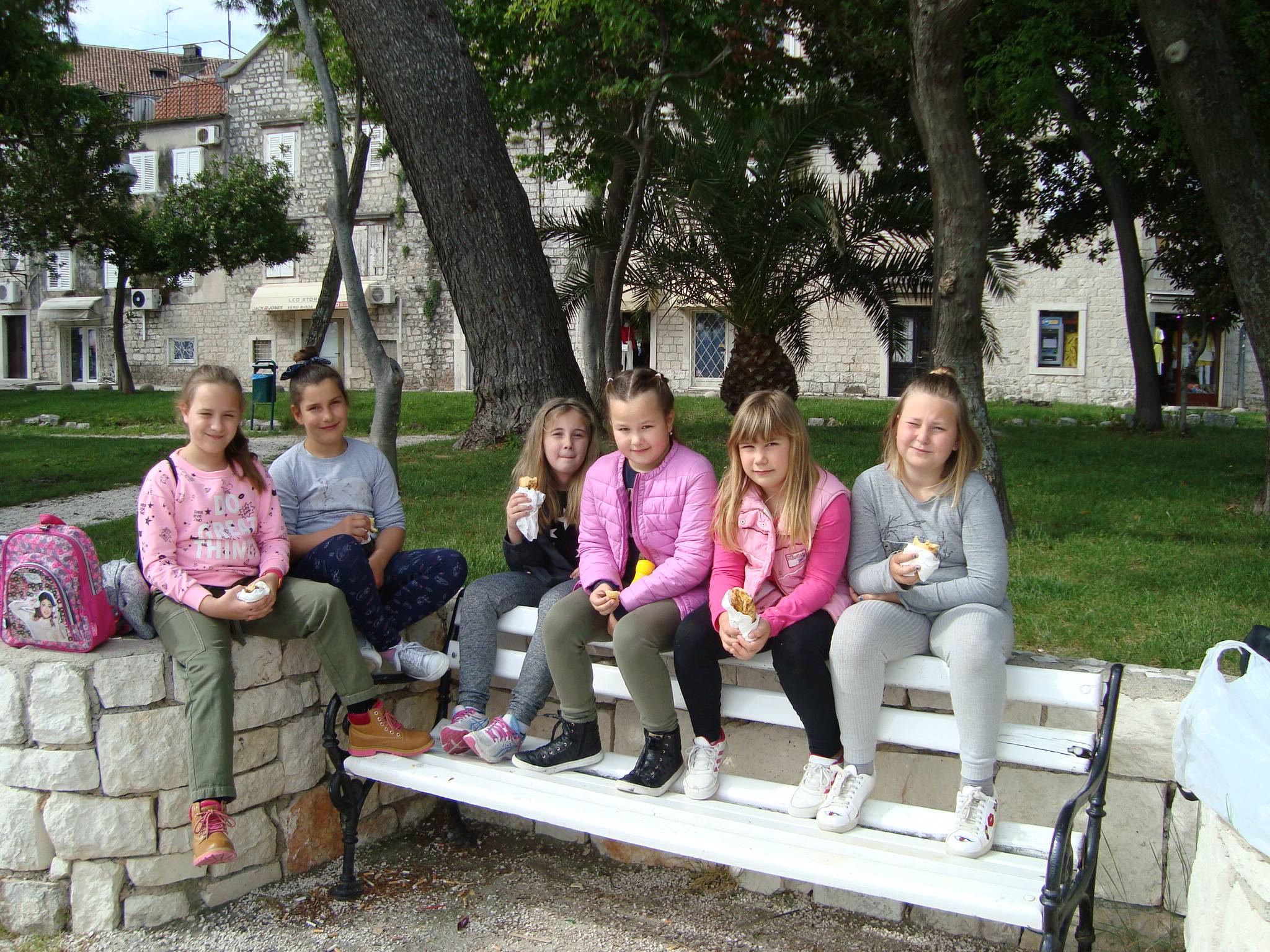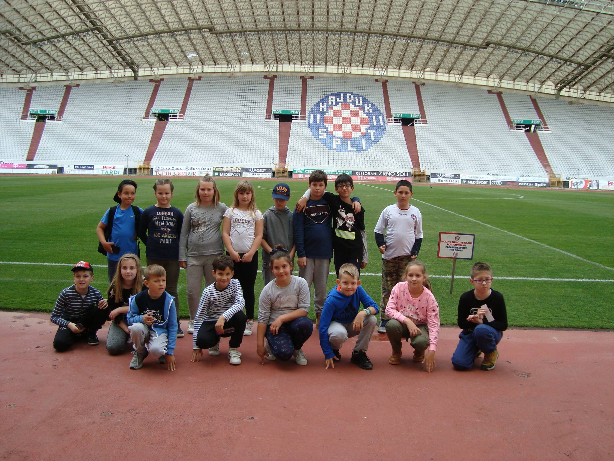 Terenska nastava obuhvatila je razgledavanje stare jezgre Trogira, zračne luke, Solina i na kraju Splita. Uživali su valjajući se po travnjaku na Gospinu otoku u Solinu. Naravno, u Splitu je bio nezaobilazan stadion Poljud gdje su imali stručno vodstvo i saznali mnogo o povijesti Hajduka. Hrabri i uporni su bez stajanja istrčali cijeli krug oko Poljuda. Divili su se Dioklecijanovoj palači, dotaknuli "palac" Grgura Ninskog, zajedno uživali u ručku...