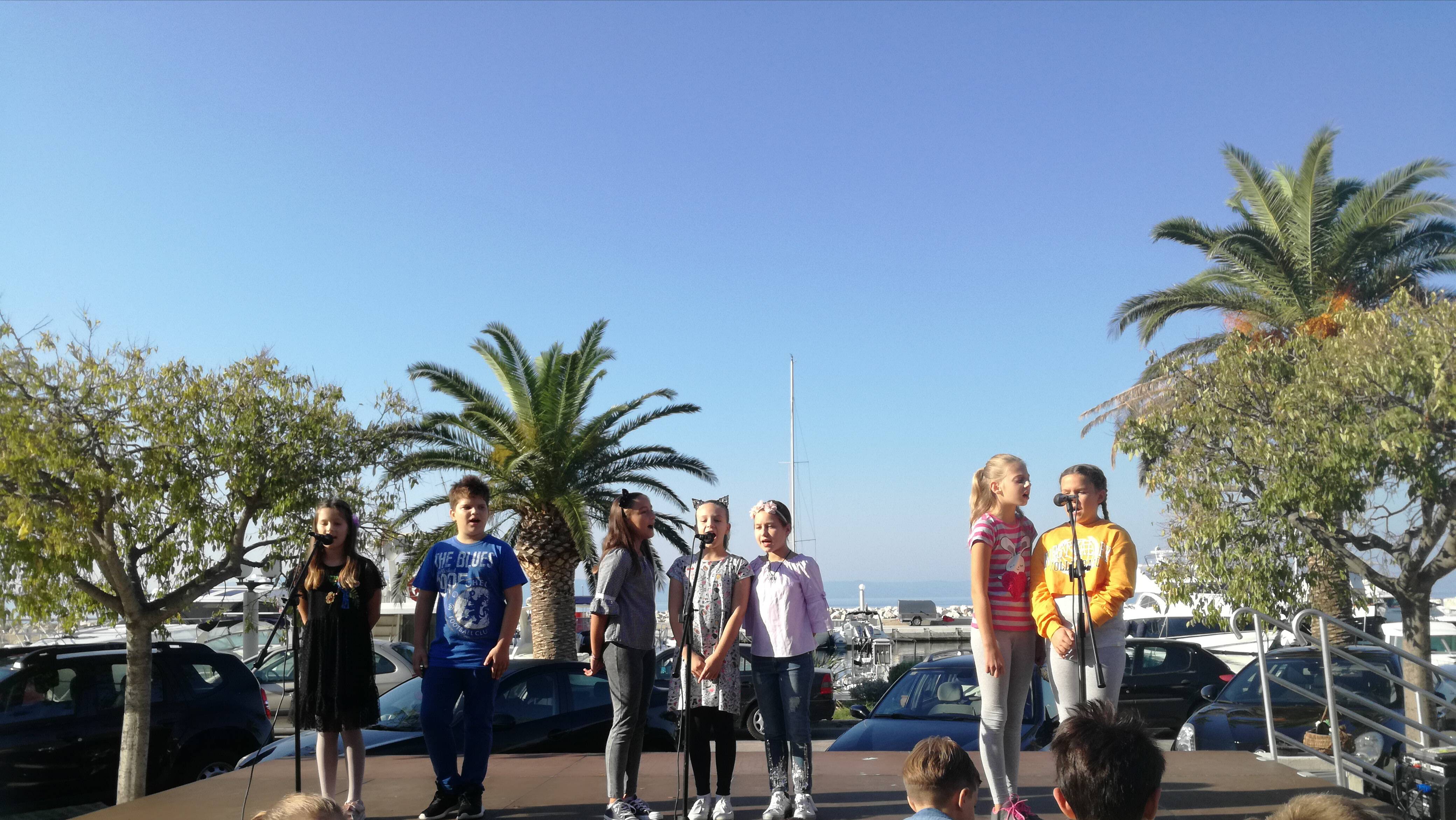 Ove godine za naš humanitarni sajam povodom Dana zahvalnosti za plodove Zemlje pravili smo jesenske slike od lišća. Na školskoj priredbi predstavili smo se poslovicama o kruhu i njihovom značenju. Otpjevali smo i dvije prigodne pjesme. Bili smo, kao i uvijek do sada, pravi mali profesionalci, jer se na pozornici ponašamo kao "kod kuće"...:)