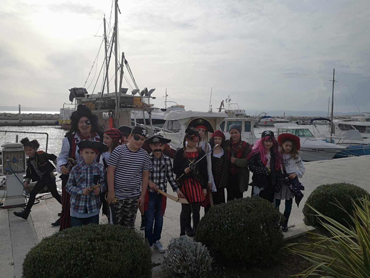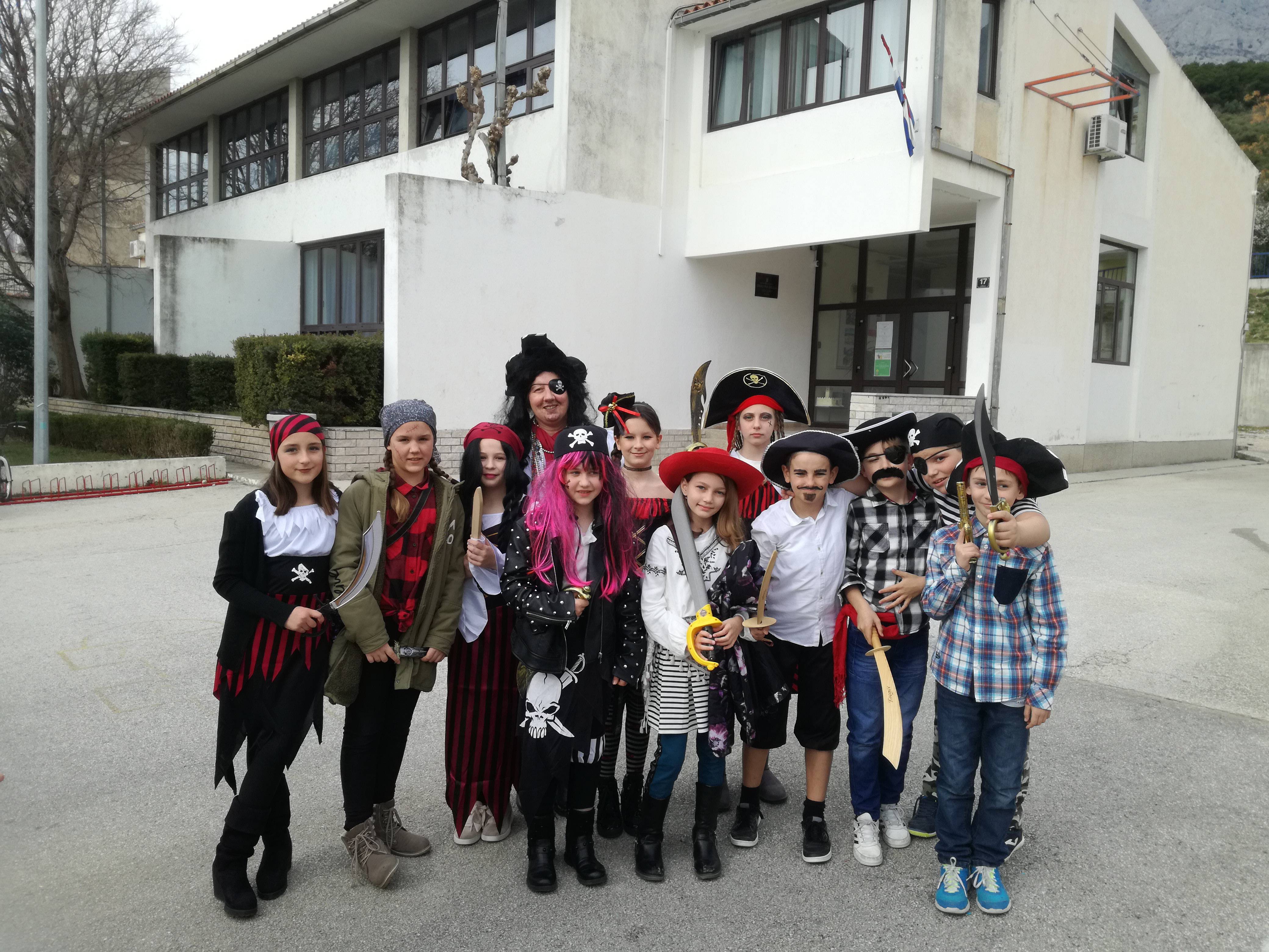 Ove godine nam je želja bila maskirati se u gusare! Itekako smo se potrudili, a rezultat možete vidjeti na slikama! Za predstavljanje naše grupne maske uvježbali smo i koreografiju sa mačevima, a za glazbenu podlogu izabrali smo filmsku glazbu iz Pirata sa Kariba!