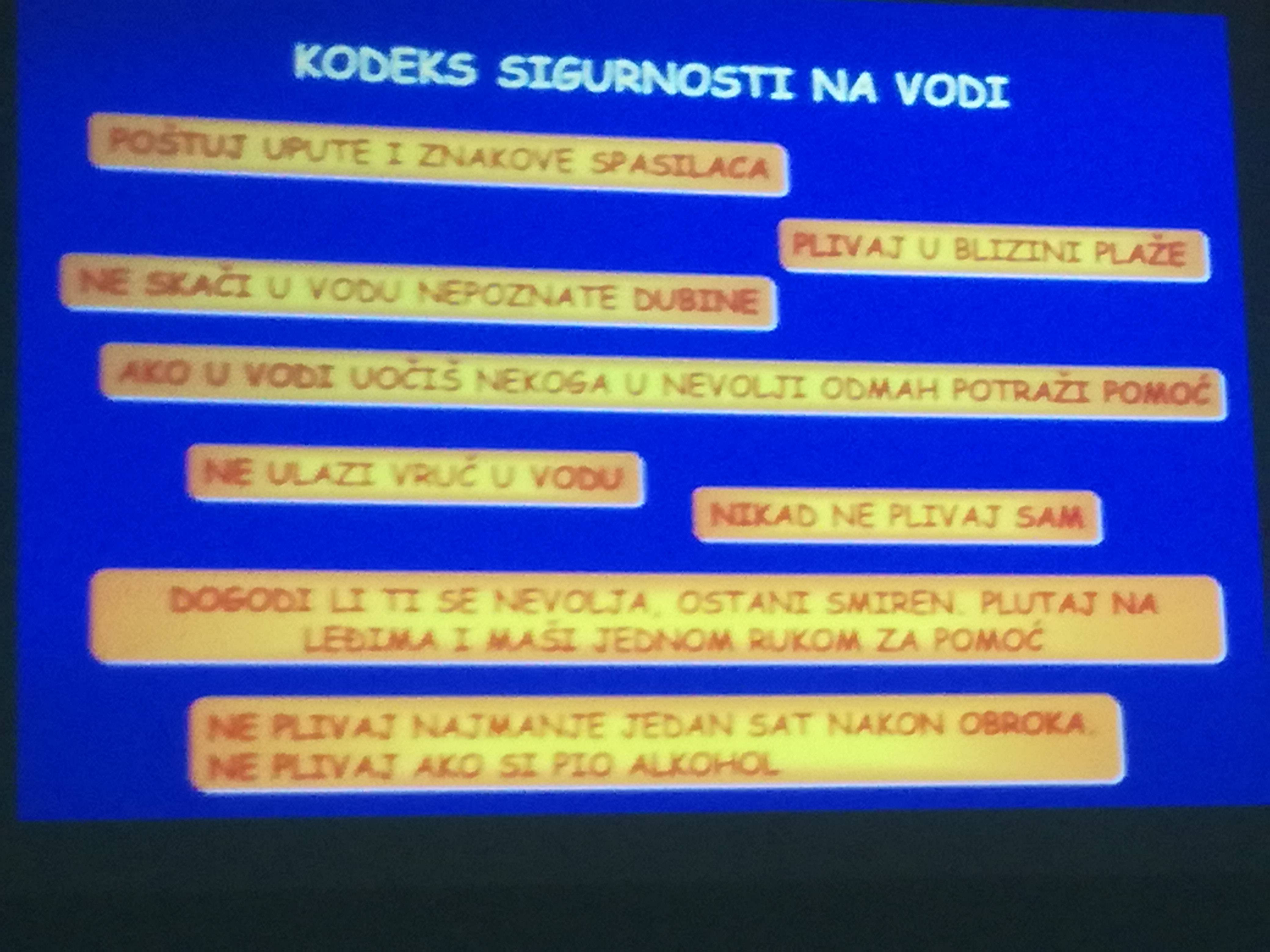 Na Satu razrednika ugostili smo g. Miroslava Dudaša iz HCK Makarska. On nam je održao predavanje i radionicu Kodeks sigurnosti na vodi. Bilo je jako poučno i zanimljivo! Našem gostu postavili smo puno pametnih pitanja i od njega na sve dobili odgovore! Saznali smo da spasilac možeš postati već u 7. razredu OŠ i to nas je jako zainteresiralo! Nadamo se da će bar neki od nas u budućnosti obavljati taj nadasve humani, odgovoran i hrabar poziv!