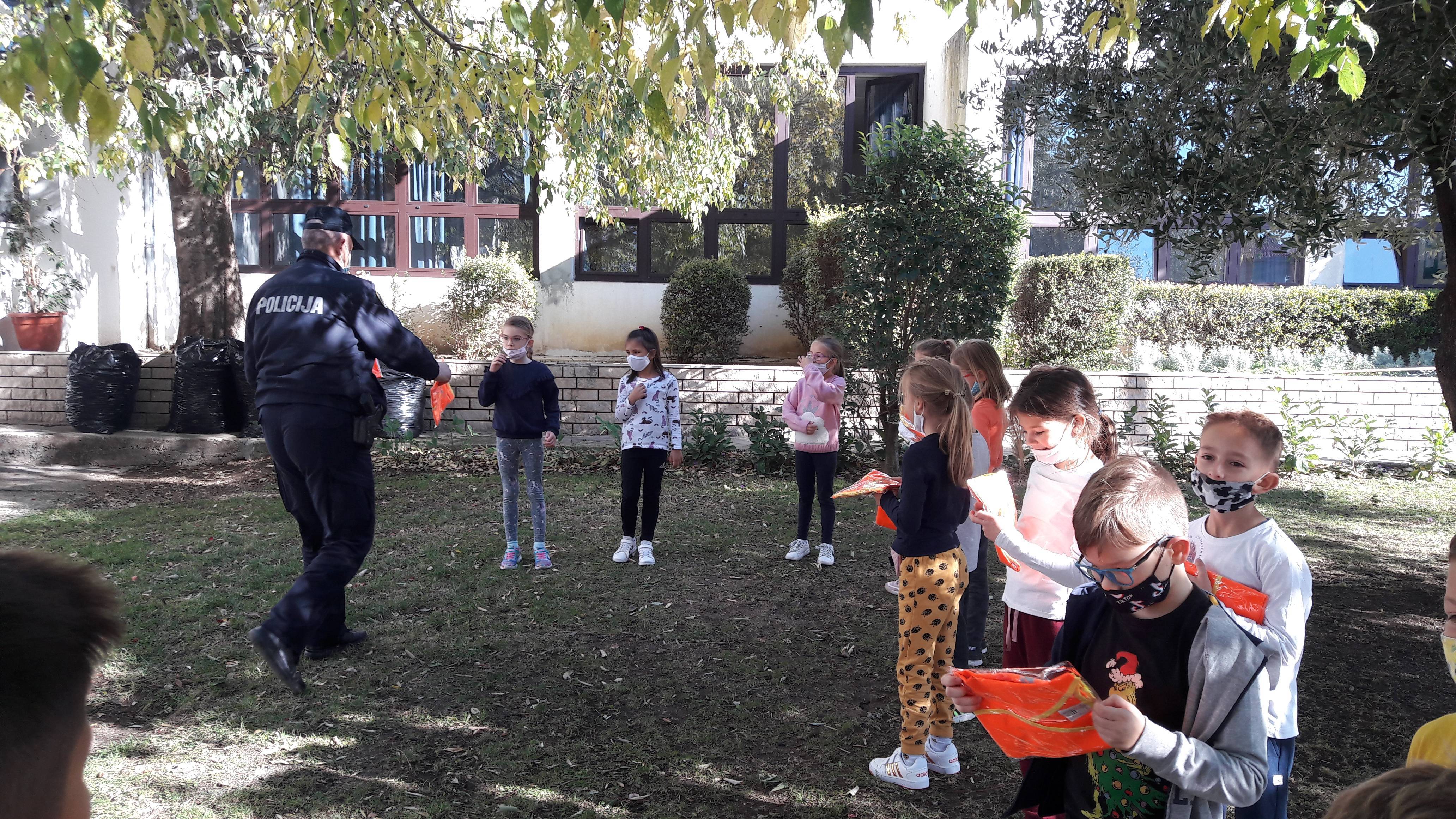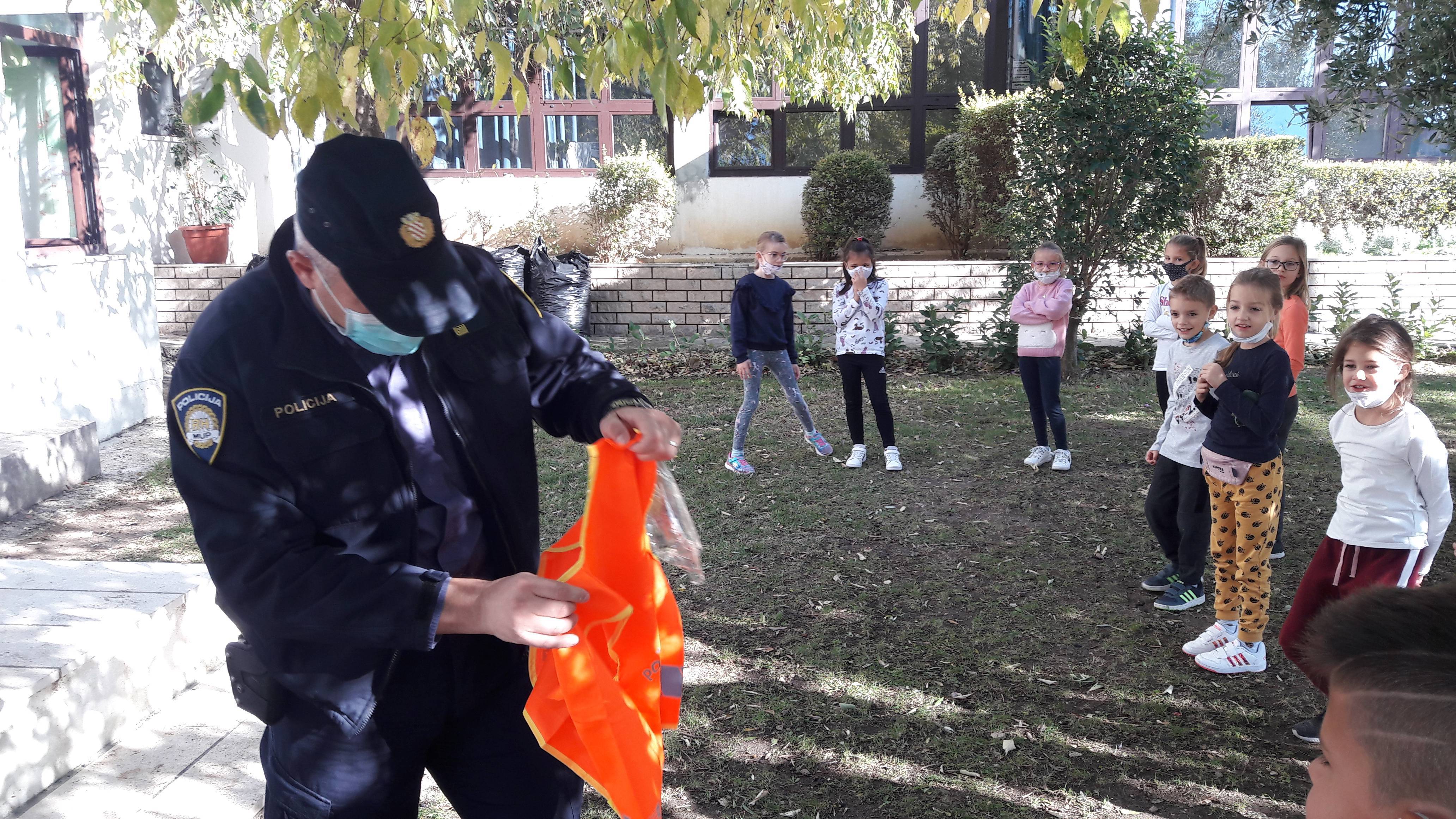 Prvaši su danas na školskom igralištu ugostili prometnog policajca.