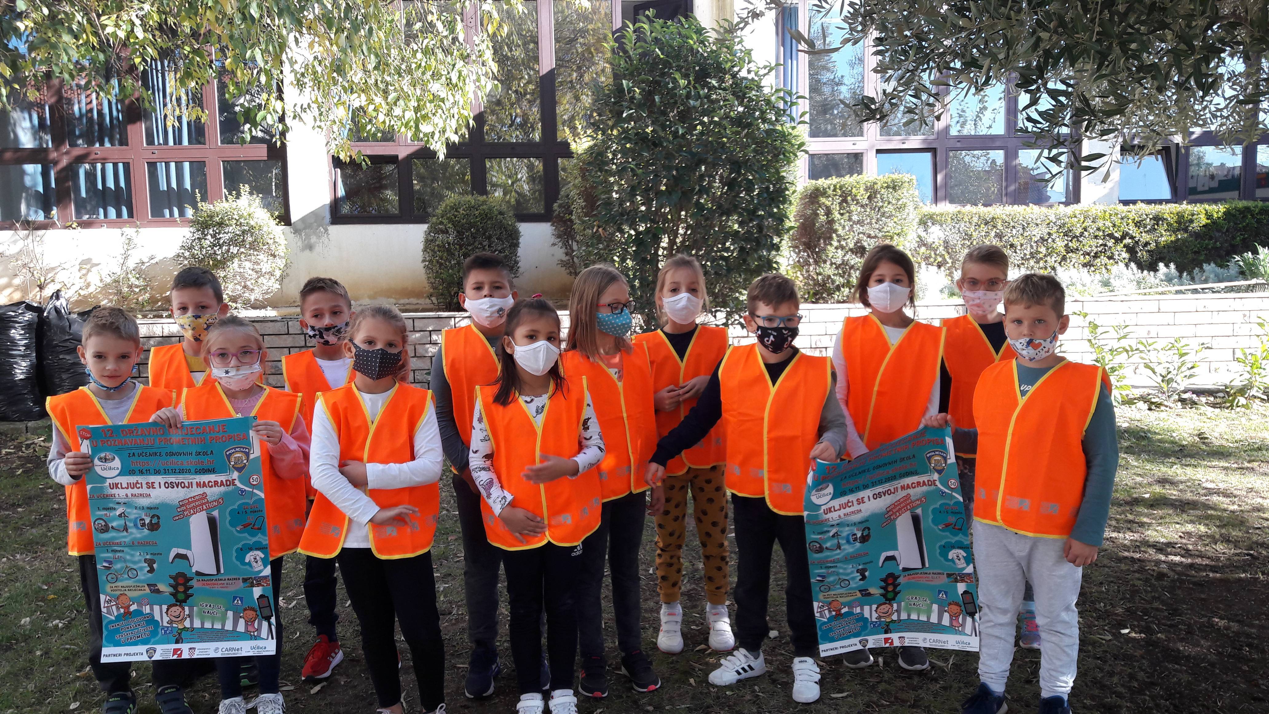 Poštujući propisane epidemiološke mjere zaštite od COVID-a prvaši su danas na školskom igralištu, ugostili prometnog policajca koji ih je poučio o ponašanju u prometu.