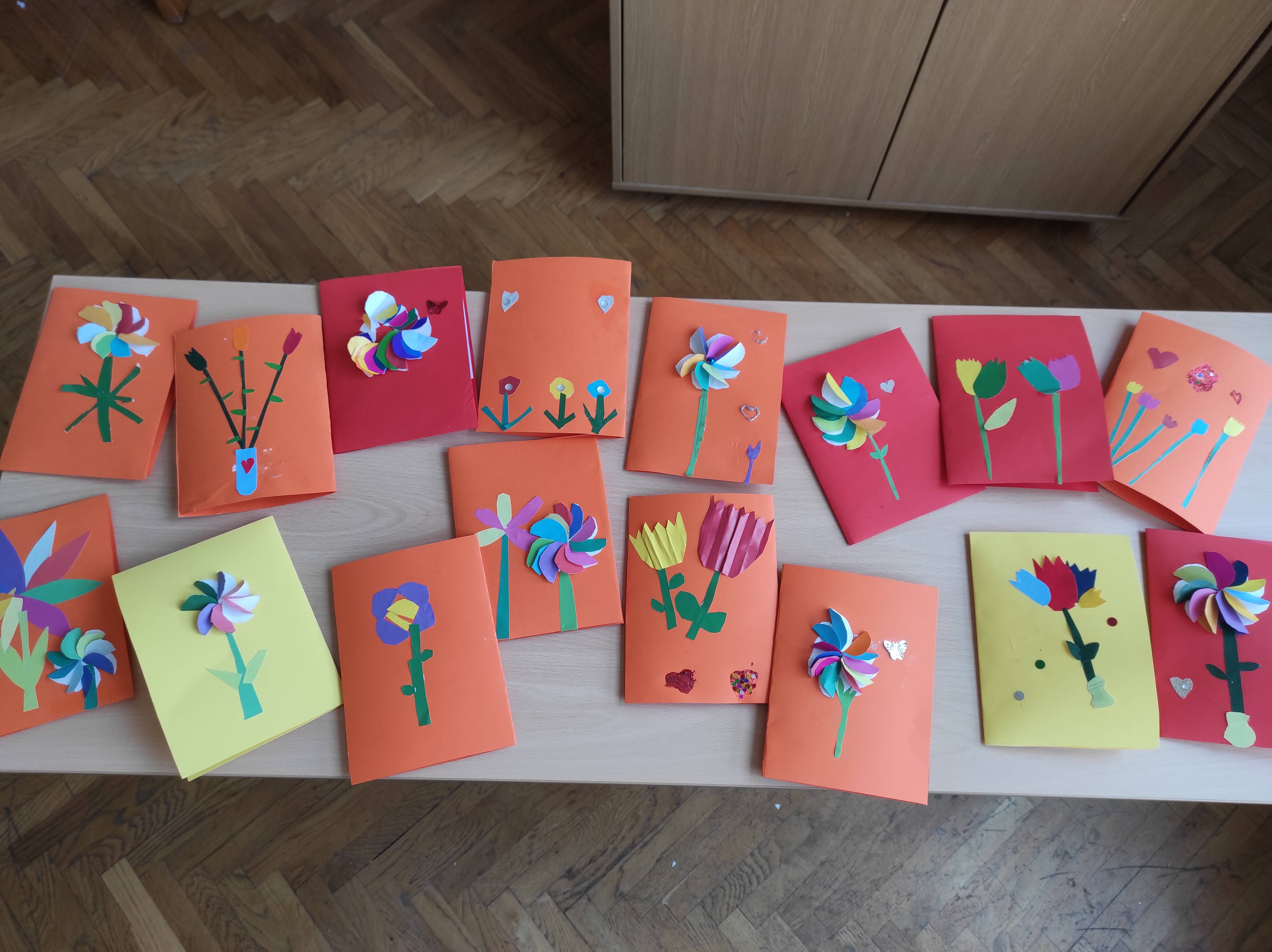 Prvaši su izradili čestitke za svoje mame povodom Dana žena. Neki učenici su napravili i čestitke za bake.