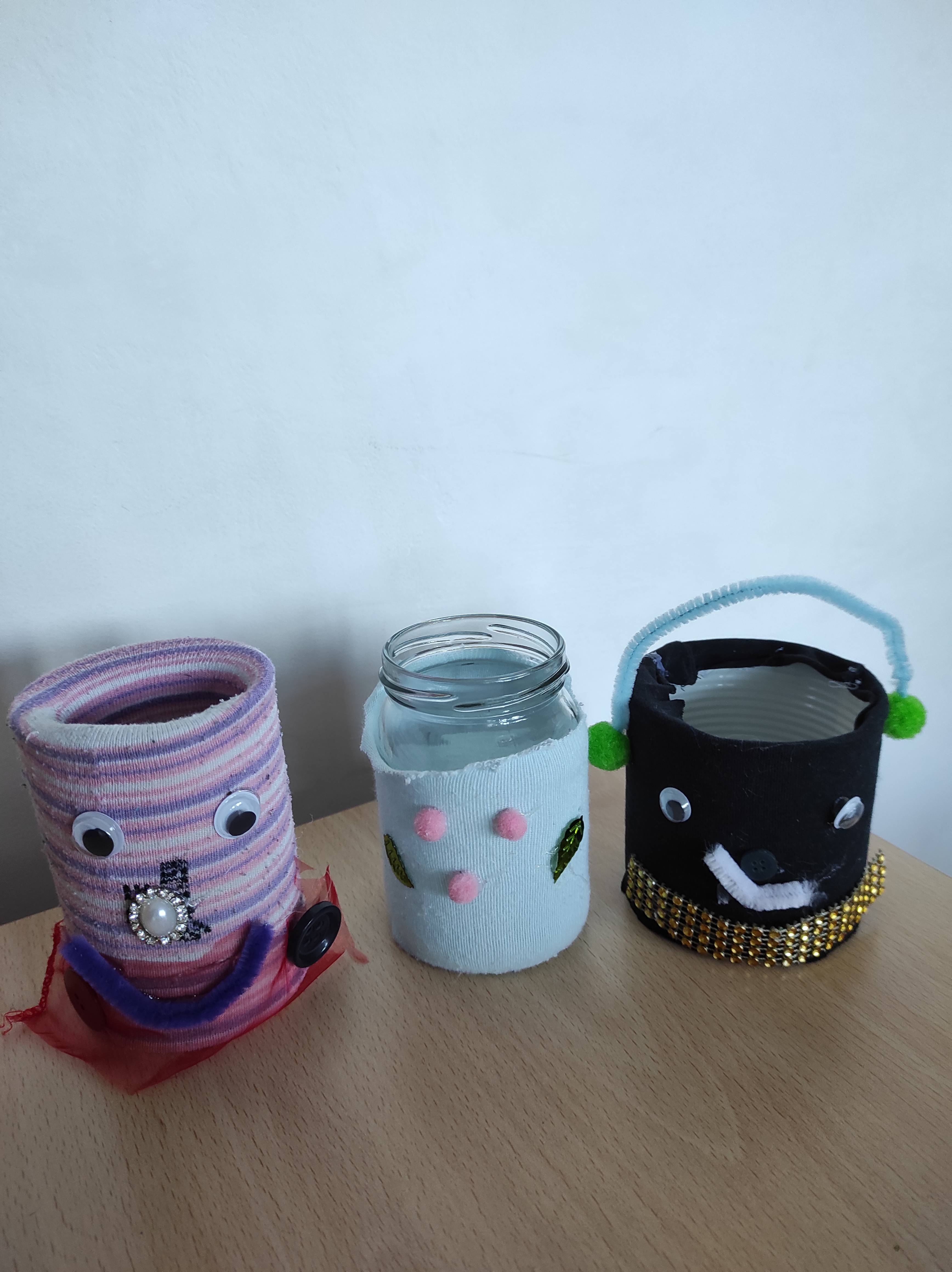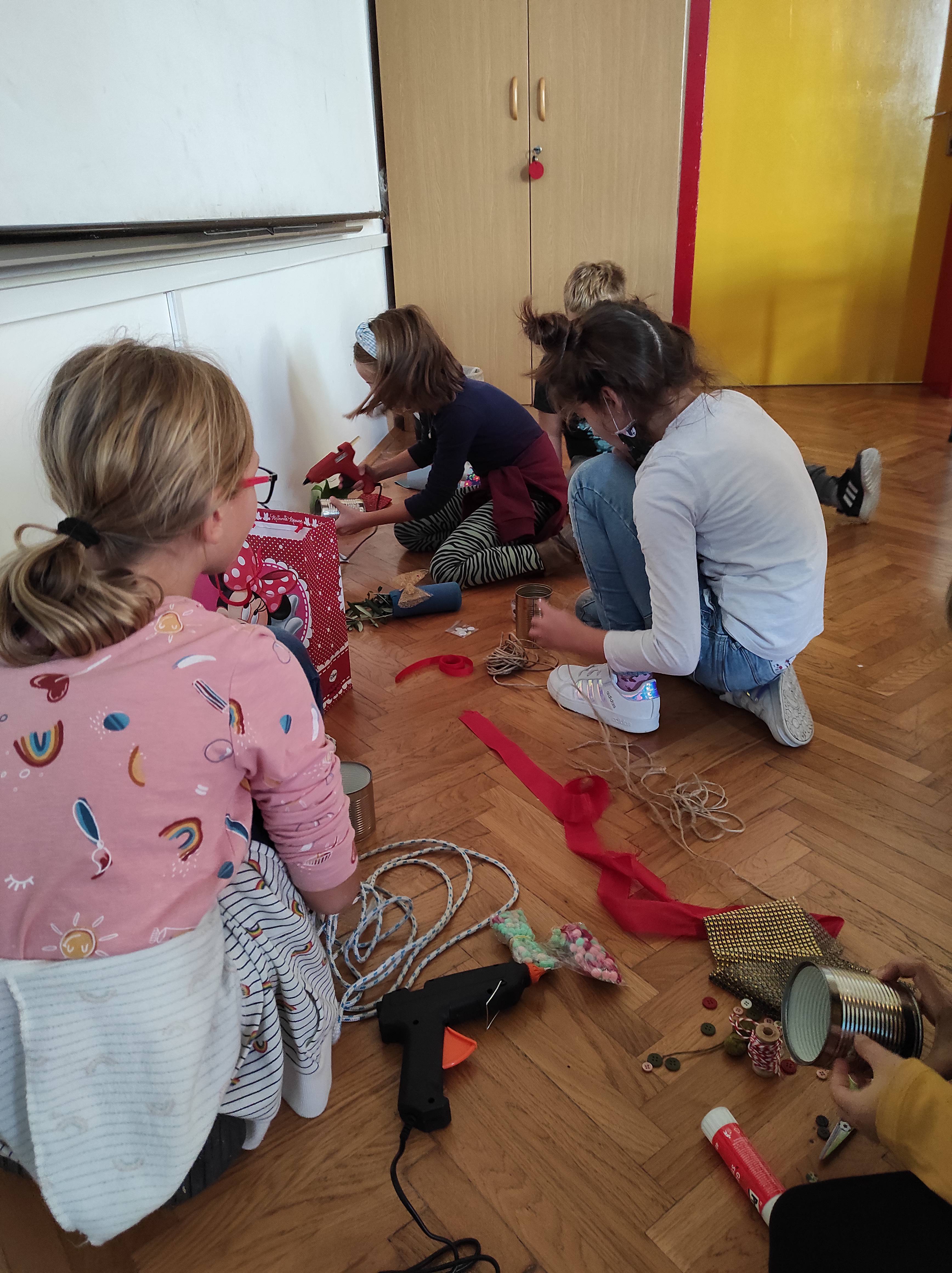 Od starih limenki i staklenki učenici drugog razreda su izrađivali stalke za olovke.