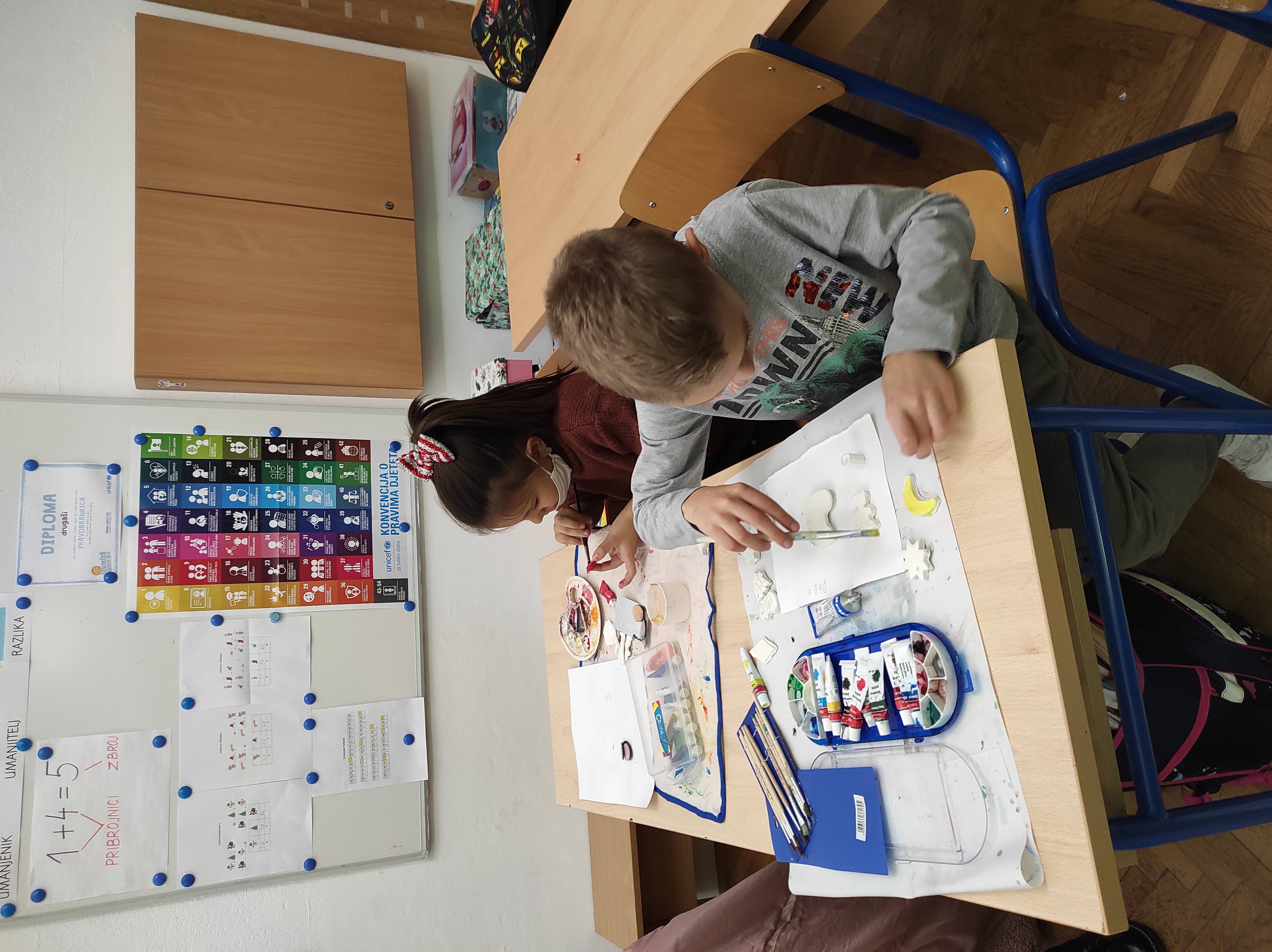 Na radionici Vrijednih ruku drugaši su pripremali vesele magnetiće za Božićni sajam.