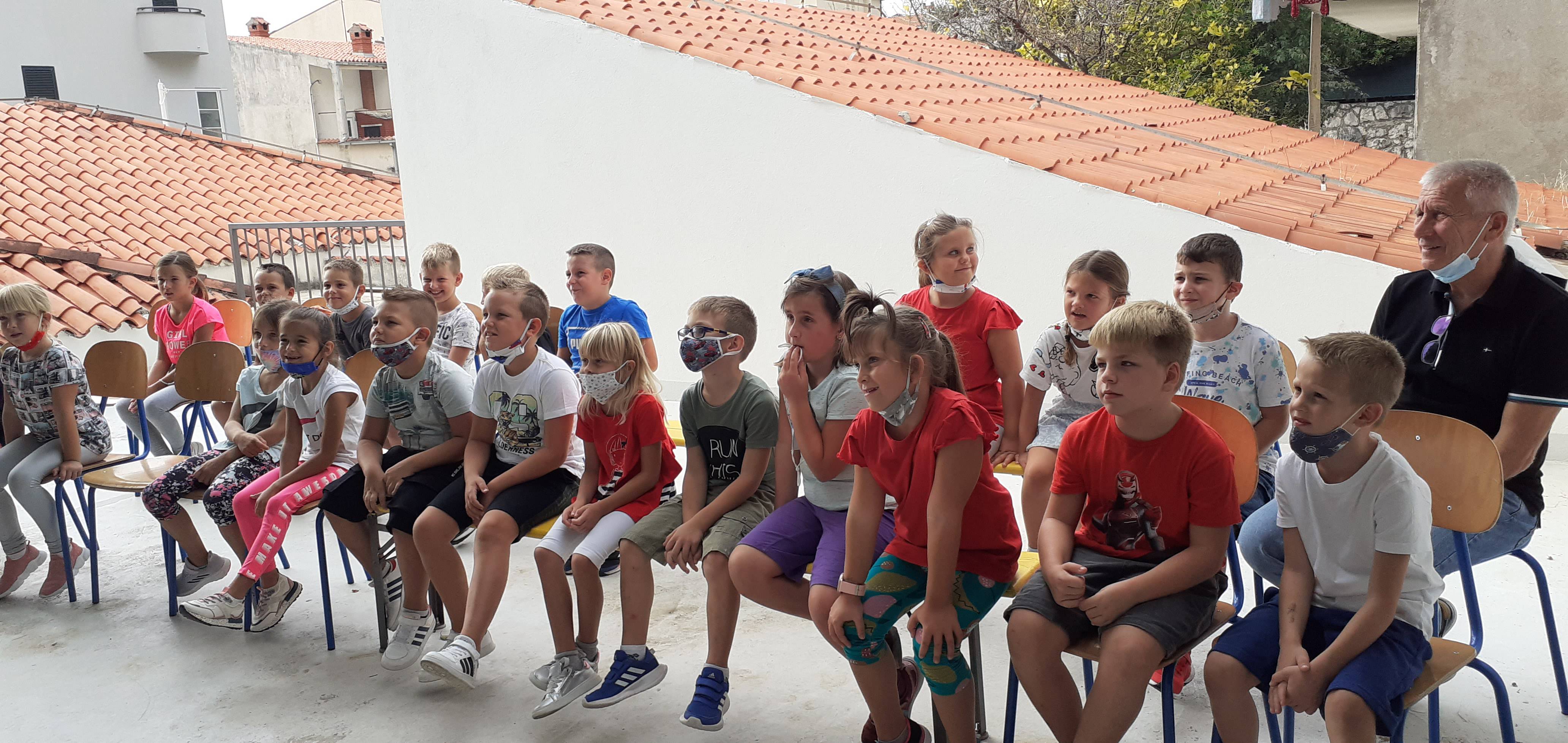 U goste smo pozvali naše prvaše i učitelja Pašku Šarića! Bili smo jako uzbuđeni i radosni! Jedva smo čekali početak predstave! Ponosno smo dočekali pljesak i oudeševljenje naših prvaša! Na kraju smo im zapjevali nekoliko pjesama, a njima se najviše svidjela pjesma Šaputanje, jer i ona govori o jeseni...!!!![]()