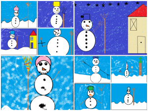 Bliži se zima i zimske radosti. Prvaši s razrednicom dekoriraju razred i izrađuju uratke za Božićni sajam, a na satu Informatike crtaju svoje snjegoviće.