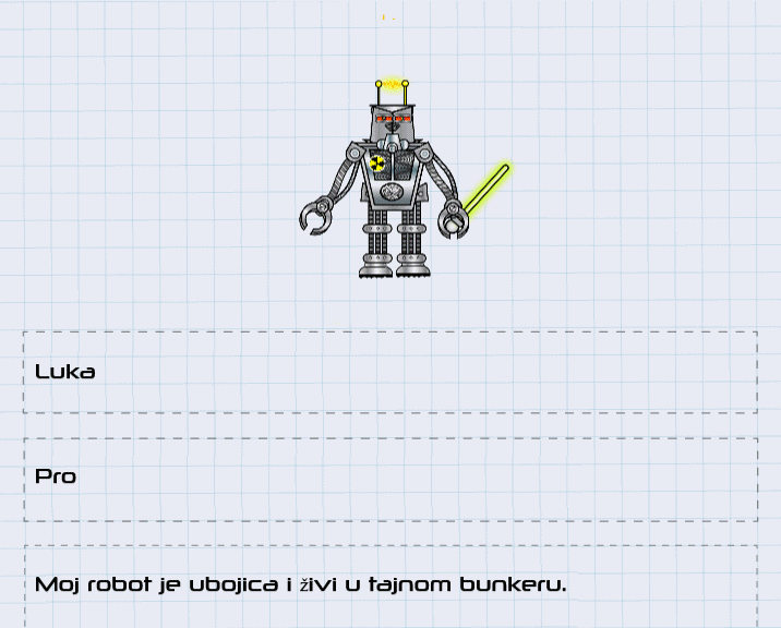 Na satu Informatike, kreirali smo svoje robote koristeći alate online programa. Dali smo im imena i napisali nešto o njima.
