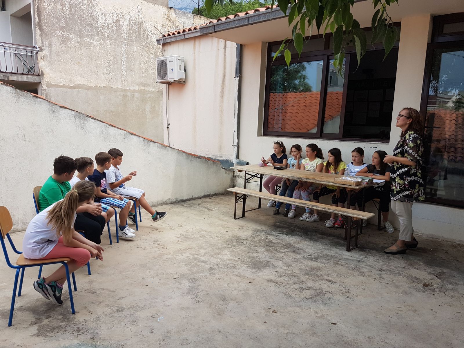 Jedan, po broju mali, 3. razred od 11 učenika je čitalo lektiru Pripovijest o doktoru Dolittleu i svidjelo im se to. Jako. U dogovoru sa učenicima i učiteljicom Nenom, našli smo se nakon velikog odmora na terasi ispred učionice, u srijedu, 9. svibnja 2018. godine. U sjeni predivno zelene kostele, koja radi najbolju hladovinu na svijetu, smjestili su se učenici podijeljeni u dvije grupe.