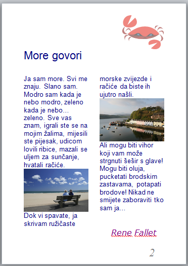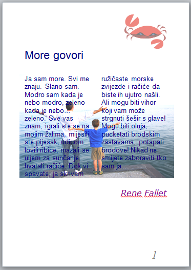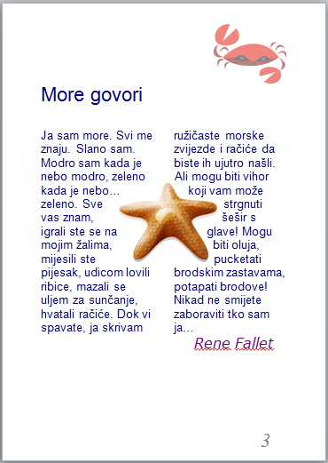 Oblikuj dokument na način da izgleda kao na slikama (u zaglavlje stavi sličicu raka ili neke morske životinje, a u podnožje stavi numeraciju stranica: