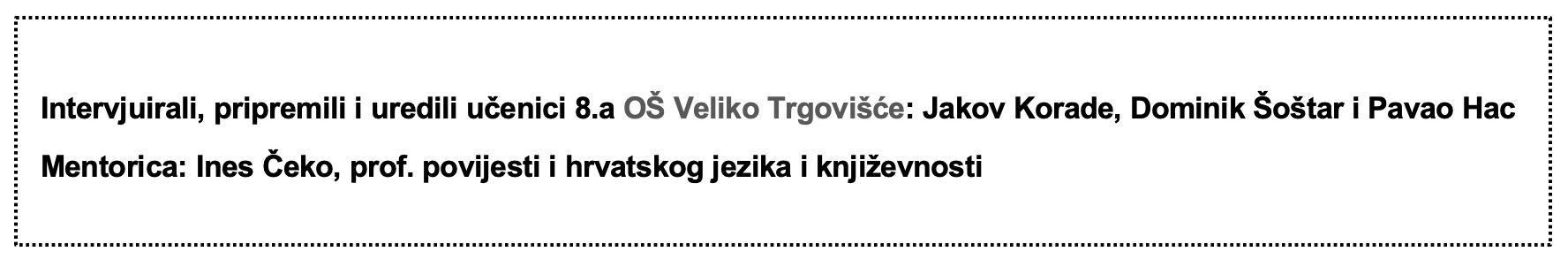 Na natječaj su se prijavili članovi radijske skupine Jakov Korade, Dominik Šoštar i Pavao Hac s mentoricom Ines Čeko i to u kategoriji literarni uradak s audio snimkom. Učenici su napravili intervju s načelnikom Velikog Trgovišća Robertom Greblički. Intervju su opremili prema pravilima novinarskog izričaja.