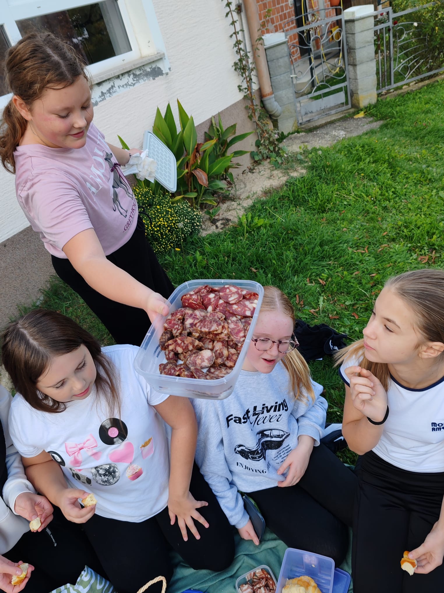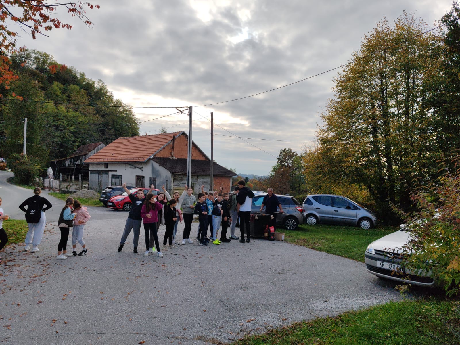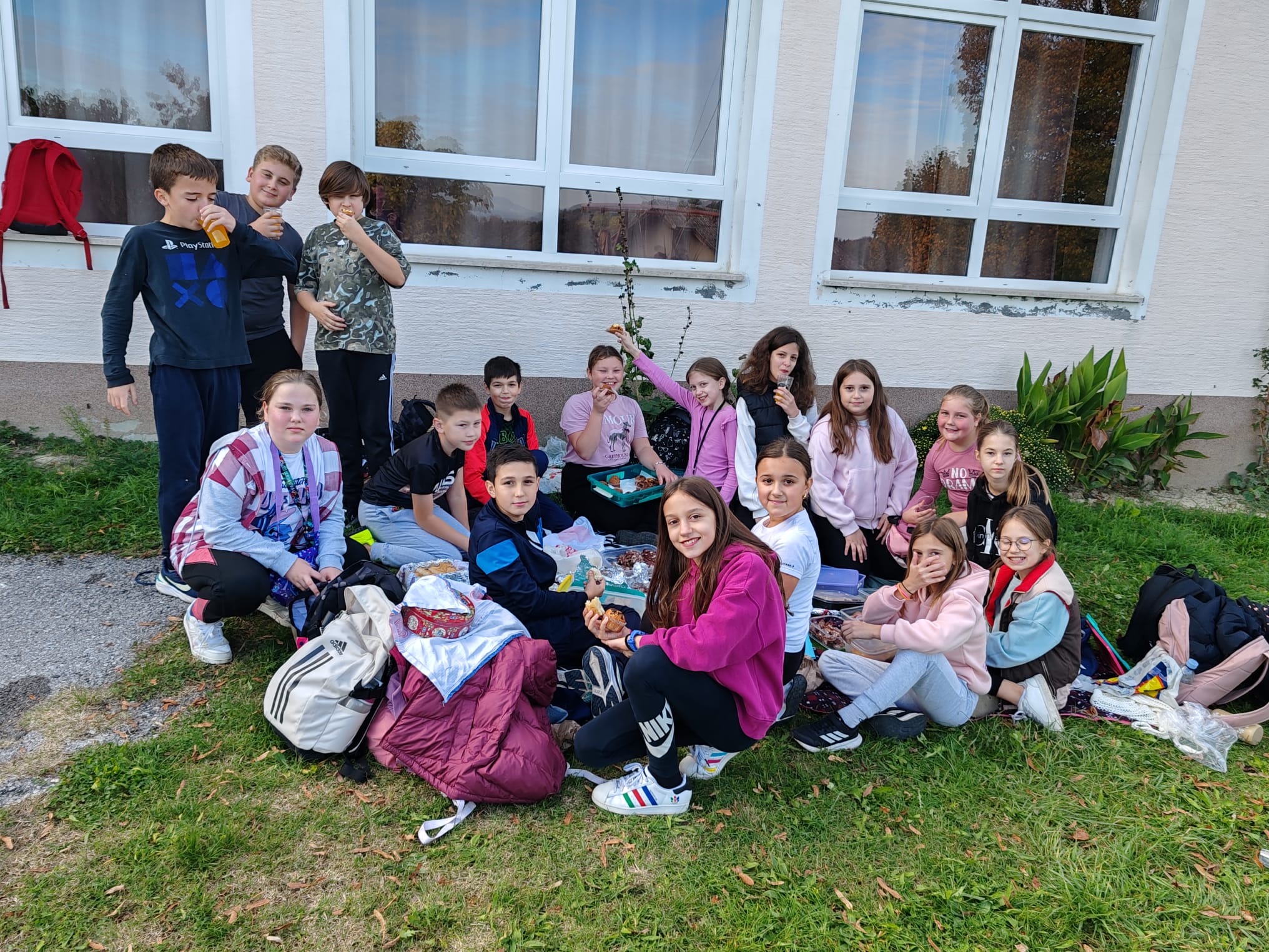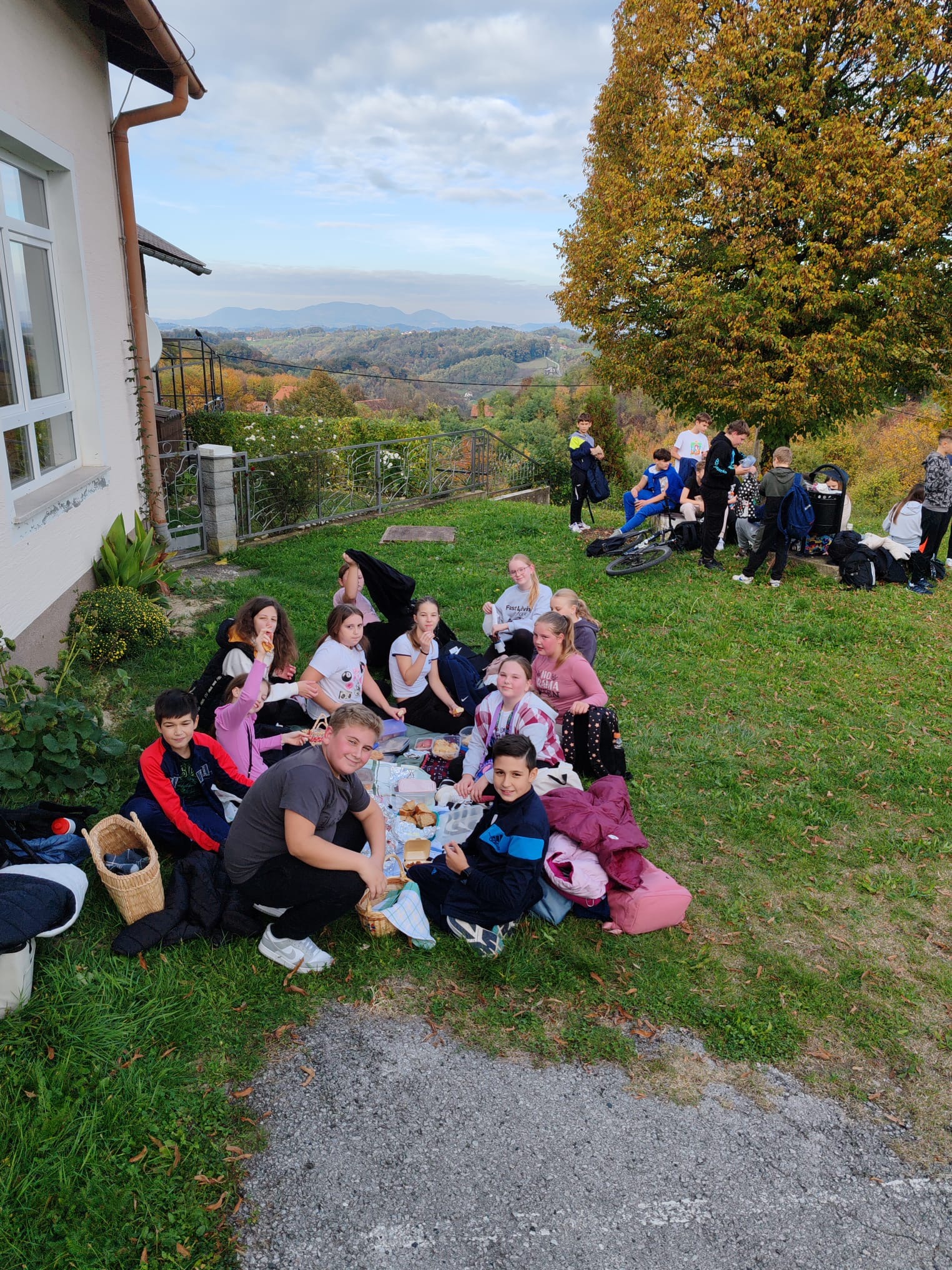 Nastavljeno je pješačenje prema cilju i nakon 1 h 28 min učenici su stigli na odredište. Po dolasku učenici su se osvježili sokovima te su potrošenu energiju vratili kestenima i domaćim prroizvodima (domaće kobasice, povrće, sirevi, pogače, bučnice……). Pečeni su kesteni bili spremljeni na starinski, klasičan način od strane gospodina Ivana Lojne koji godinama peče kestene u našem kraju i sad već već tradicionalno za naše učenike. Učenici nisu smjeli imati mobitele te su pričali i družili se na pomalo zaboravljen način, oči u oči. Velika je vrijednost pokazati učenicima koliko je važna normalna komunikacija, kao i sport i rekreacija. Učenici su se u pratnji učitelja vratili pješke u Vižovlje gdje ih je čekao prijevoz kućama.