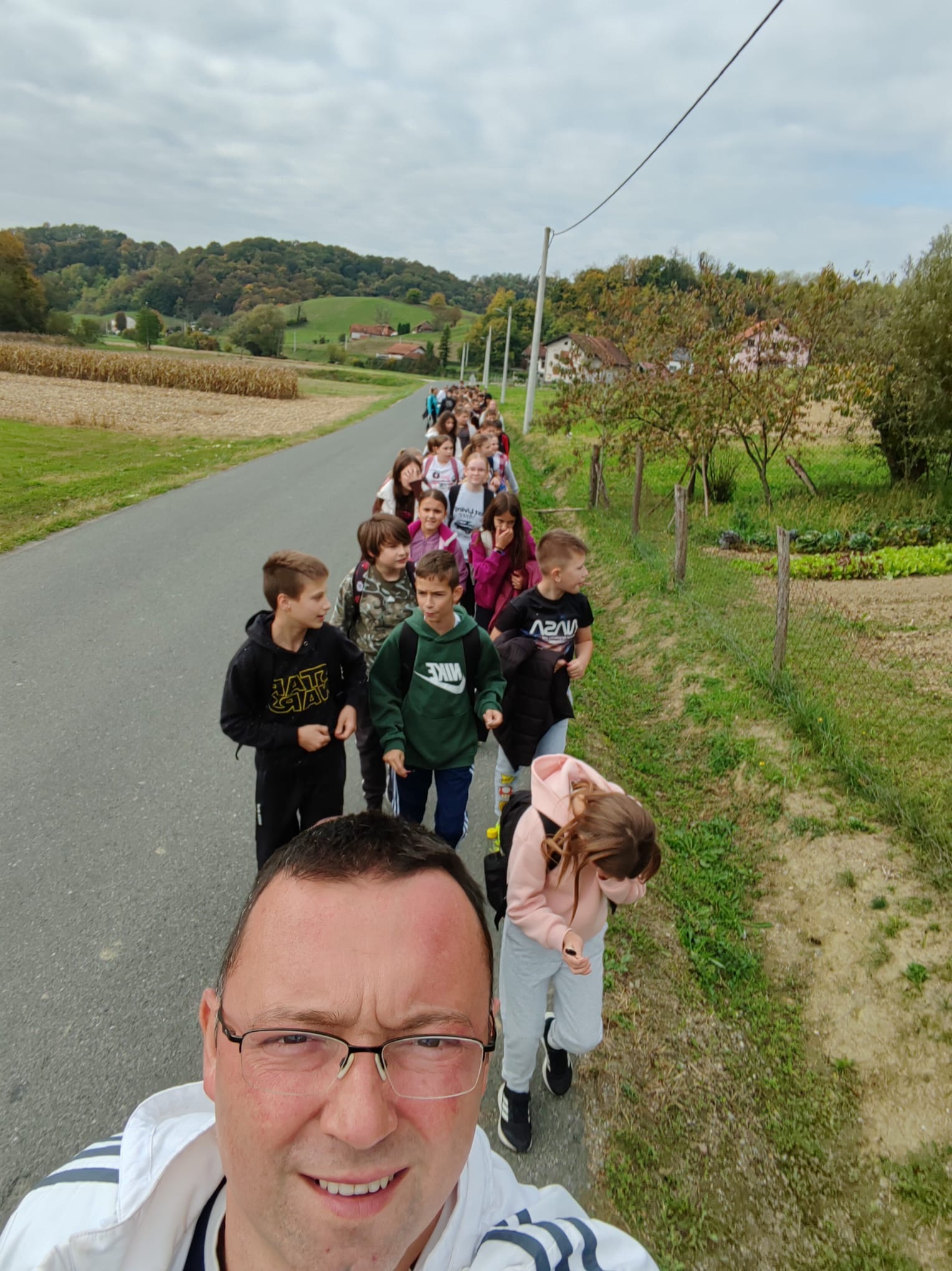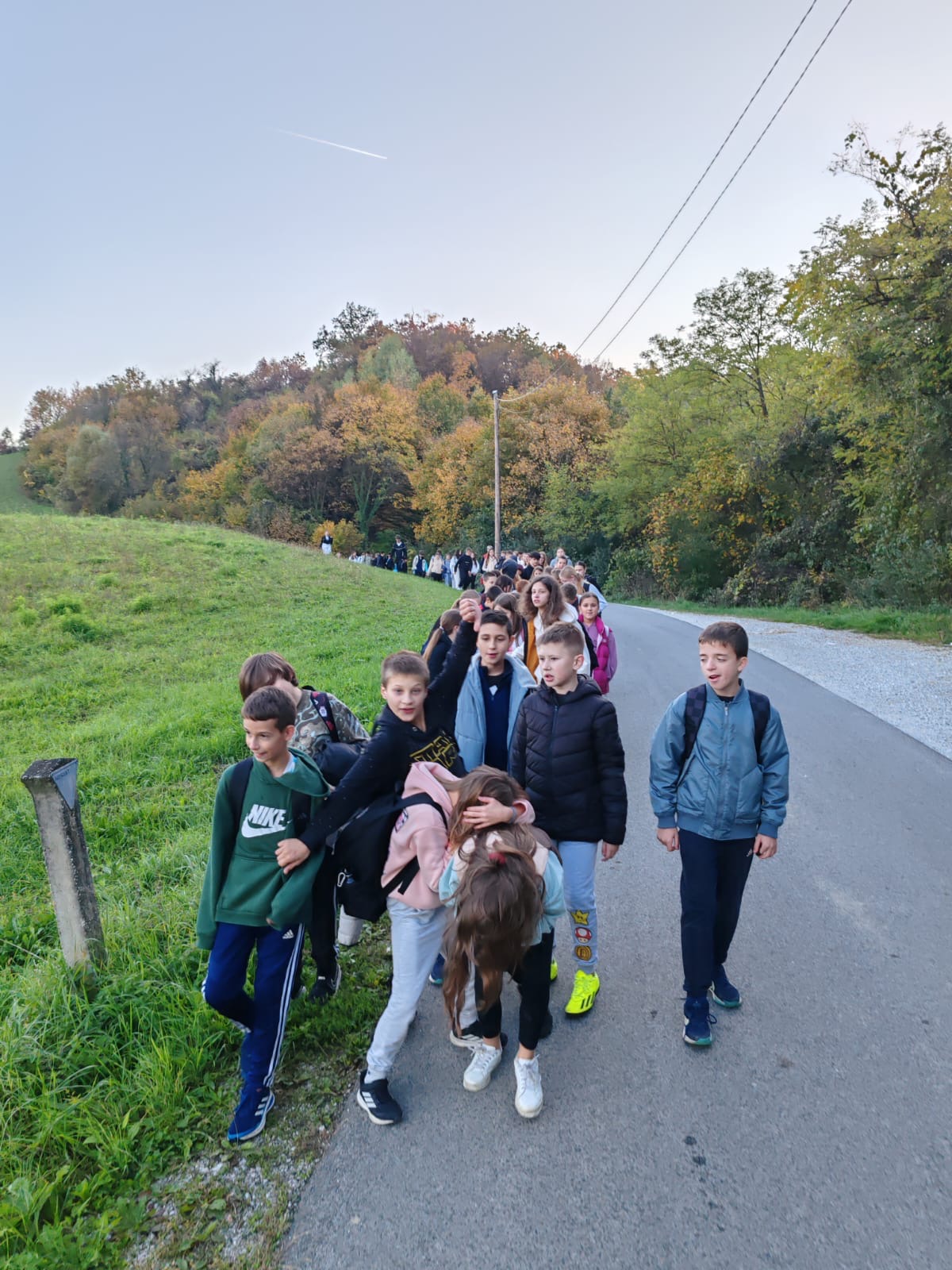 Učenici su normalnim hodom krenuli prema Strmcu u koloni po 2 učenika poštujući pravila ponašanja u prometu. Tempo nije bio prejak te su gotovo svi učenici uspijevali držati korak. Ukoliko je netko zaostajao, utoliko je skupina usporila i sačekala sve učenike da se priključe.