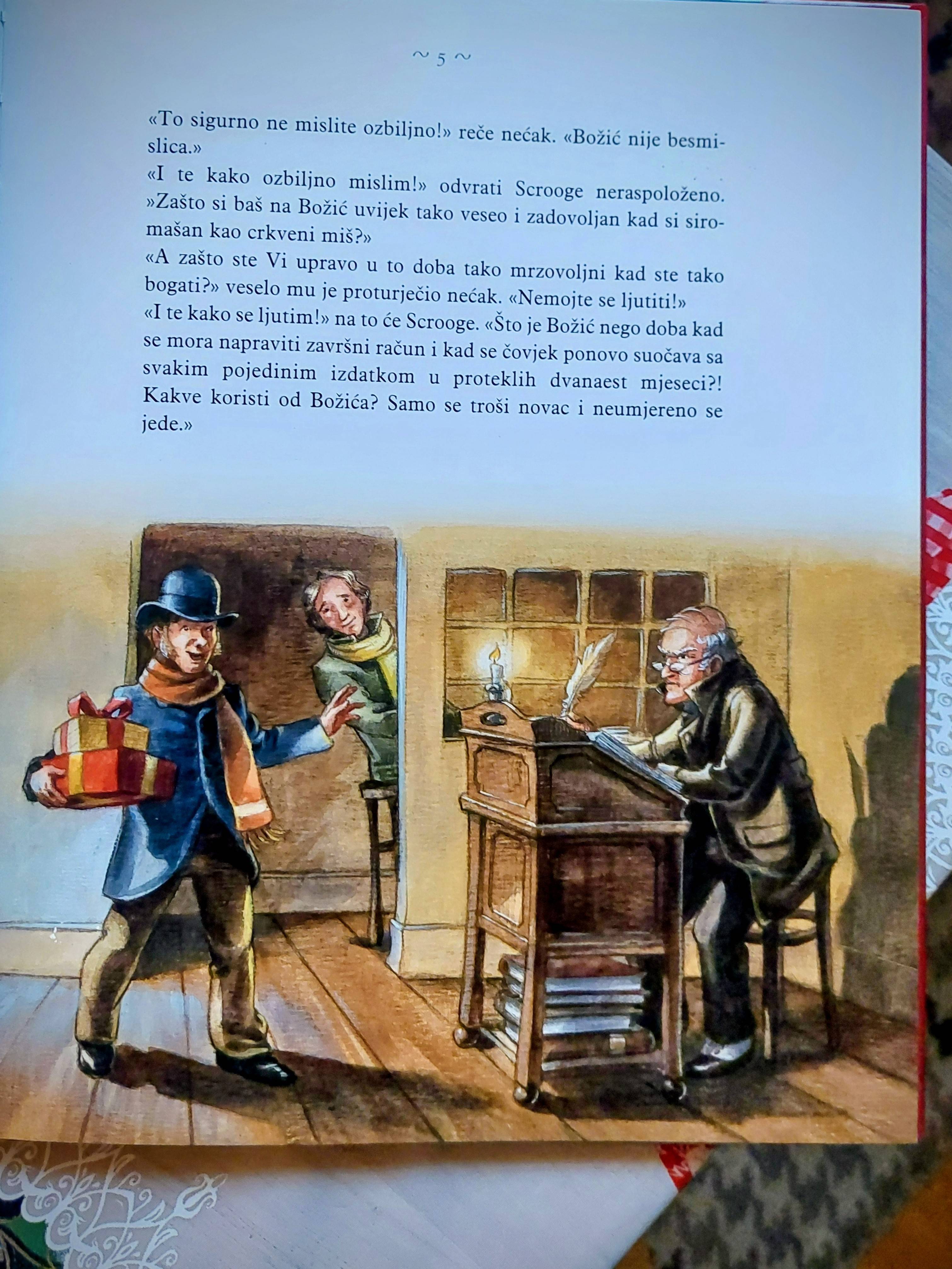 Učiteljica Hrvatskog jezika Ines Čeko čitala je Božićnu priču Charlesa Dickensa uz podršku školske knjižničarke Vlatke Habulin i učiteljice Njemačkog jezika Martine Humski. Na početku su učenici upoznati s nastankom knjige i autorom. Saznali su da je Dickens ovu poznatu knjigu napisao kako bi otplatio vlastite dugove te da ju je stvorio u svega šest tjedana potaknut (uz dugove) i željom da prikaže nepravde svog vremena i važnost suosjećanja.