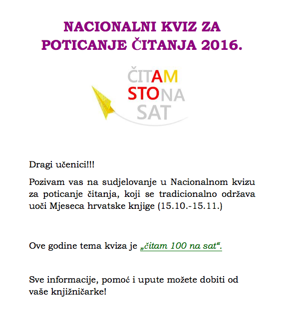 Nacionalni kviz za poticanje čitanja 2016.